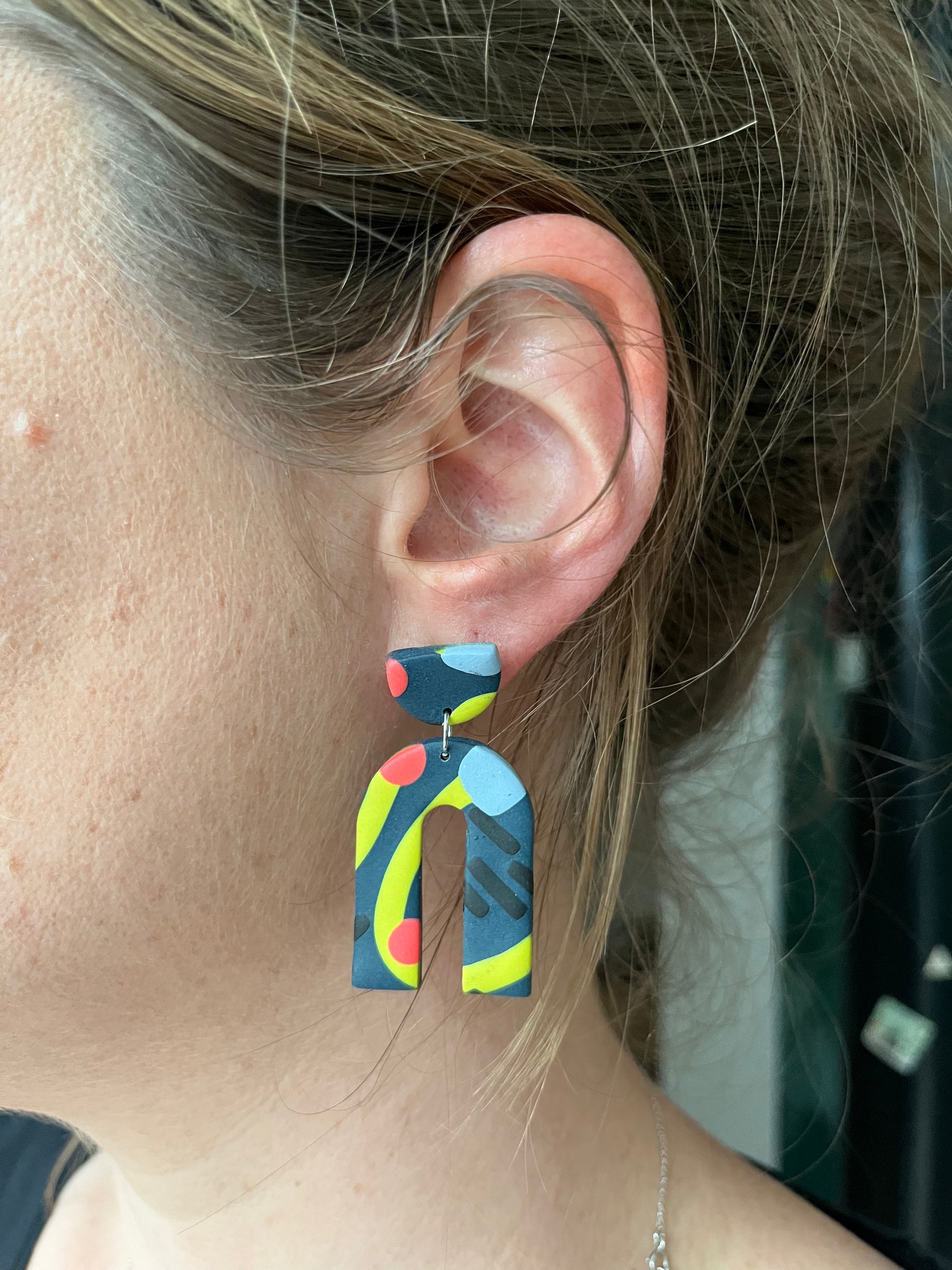 L'argile polymère est une pâte dense mais souple qui peut être modelée, sculptée, peinte… Après cuisson, cette pâte devient résistante tout en gardant sa légèreté, permettant de créer des boucles d’oreilles de toutes tailles faciles et confortables à porter.