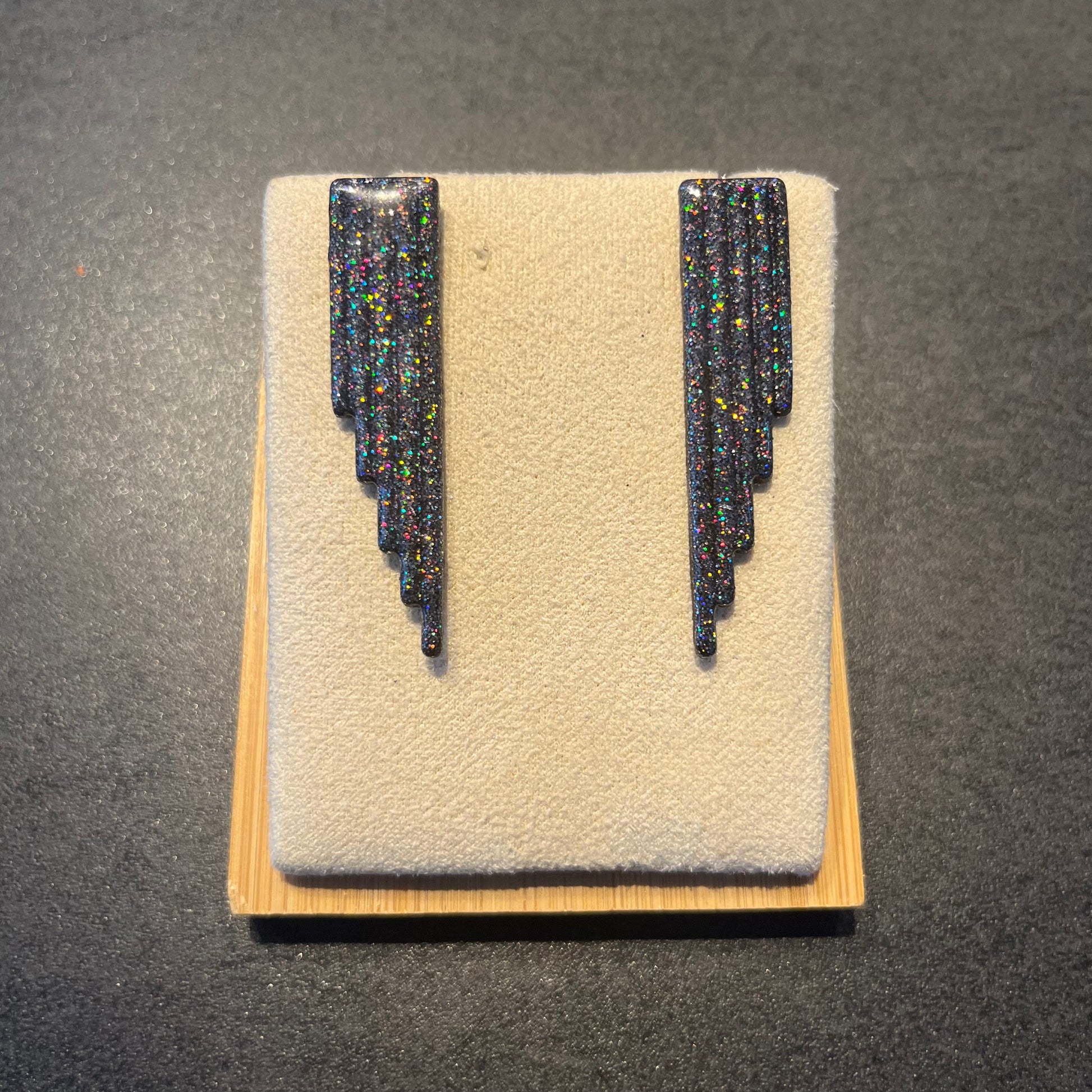 Matériau : argile polymère, finition en résine, clous d'oreille en acier inoxydable.