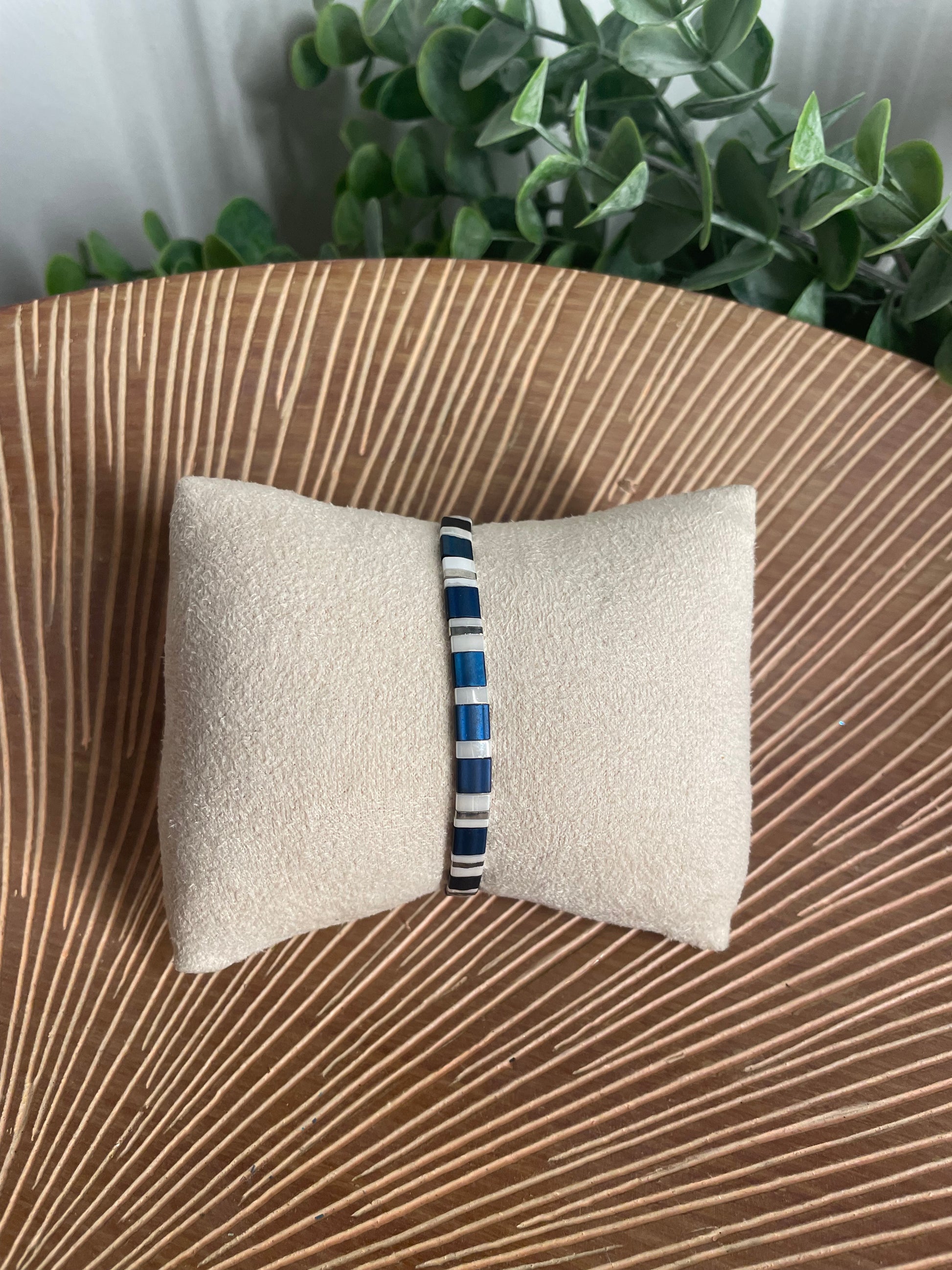 Matériau : Perles japonaises Tila en verre, fil nylon, fermoir réalisé en macramé et finition en perles cubes facettés dorés à l'or fin.
