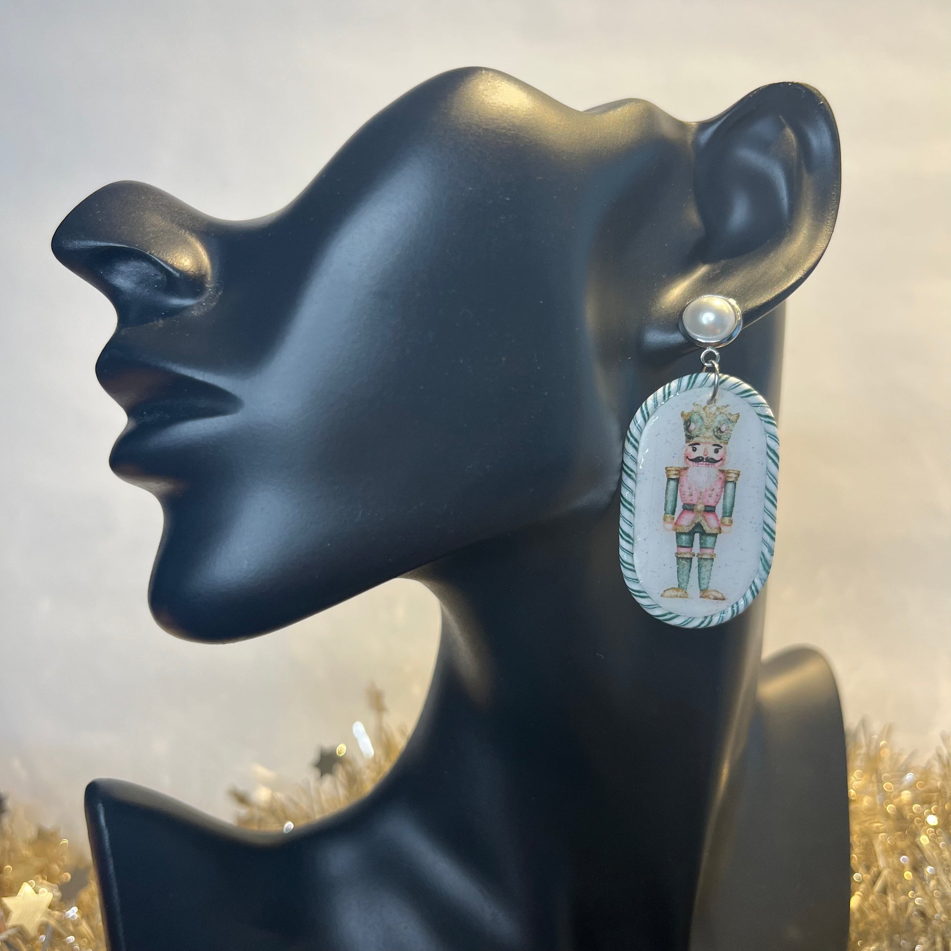 Matériau : argile polymère, finition en résine, clous d'oreille en acier inoxydable.