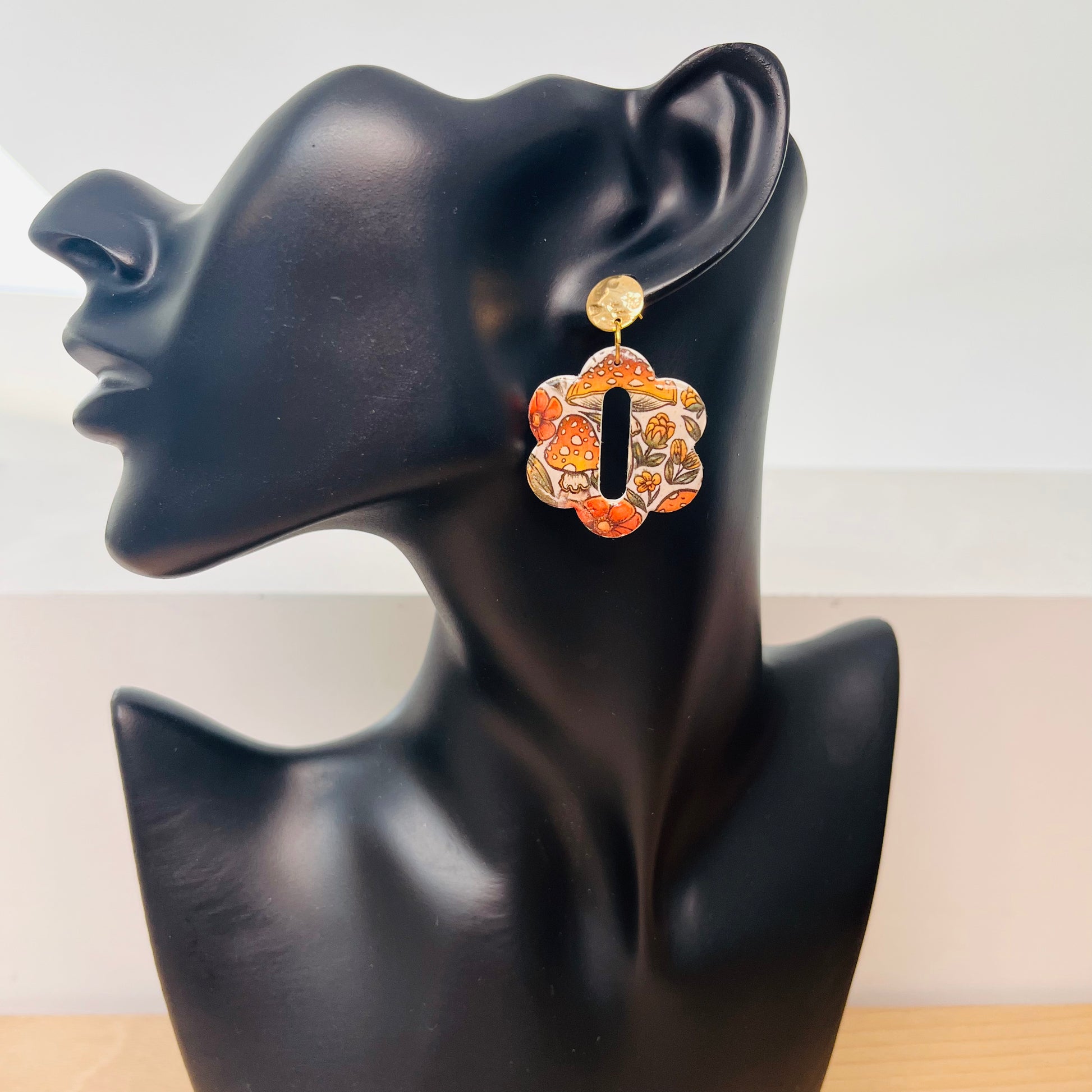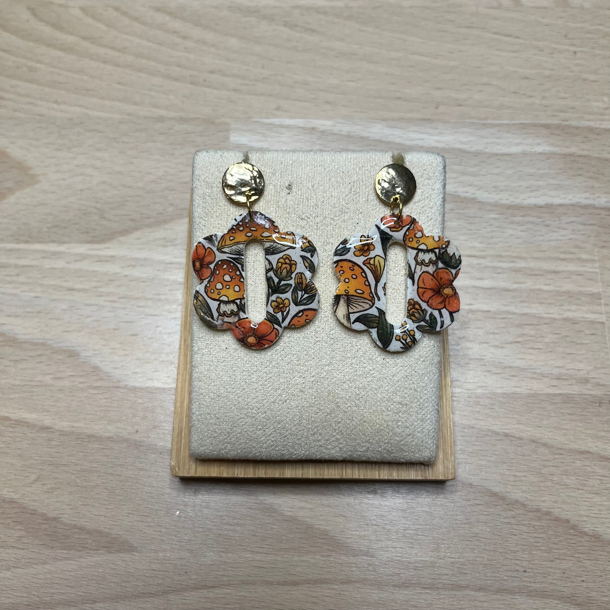 Matériau : argile polymère, finition en résine, clous d'oreille en acier inoxydable.