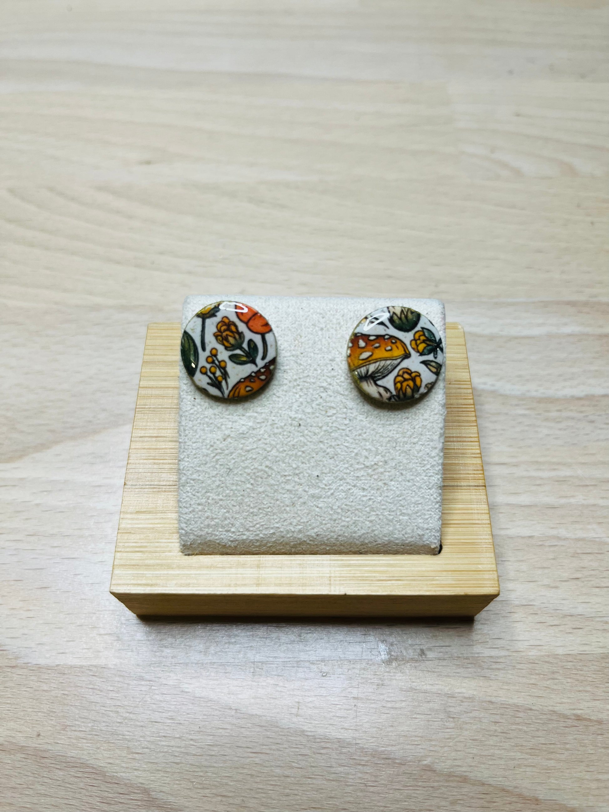 Matériau : argile polymère, finition en résine, clous d'oreille en acier inoxydable.