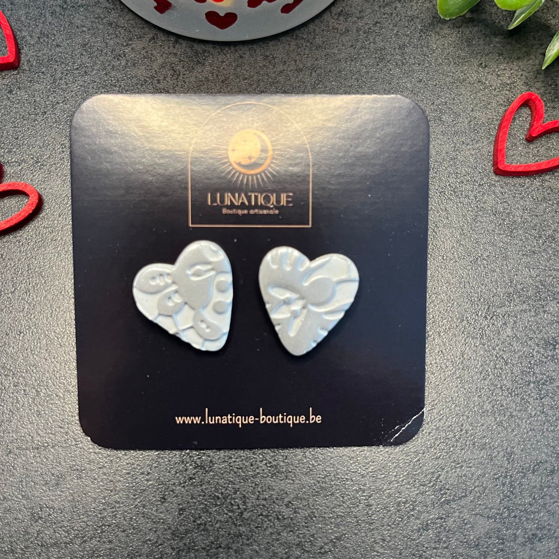 Matériau : argile polymère, clous d'oreille en acier inoxydable.