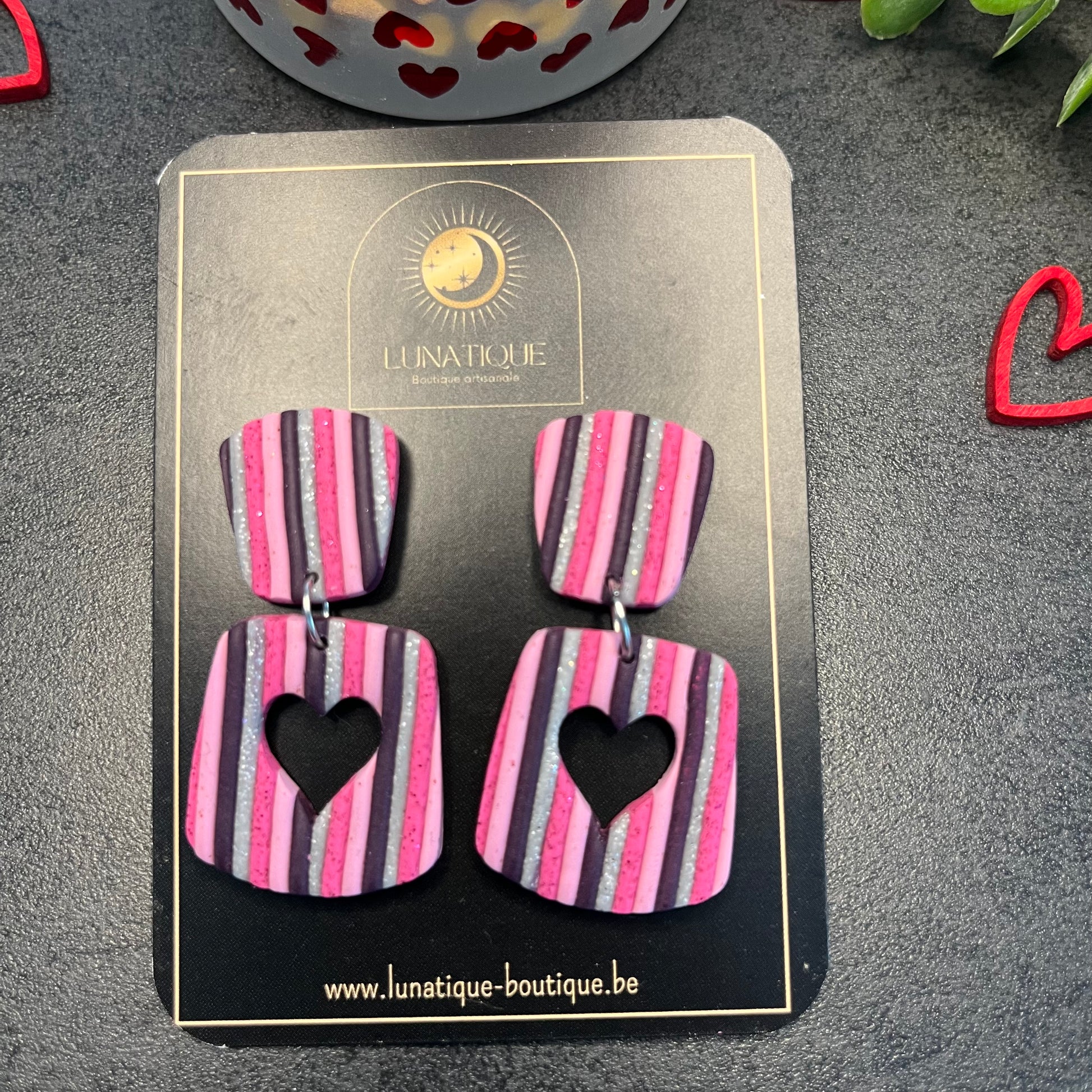 Matériau : argile polymère, clous d'oreille en acier inoxydable.