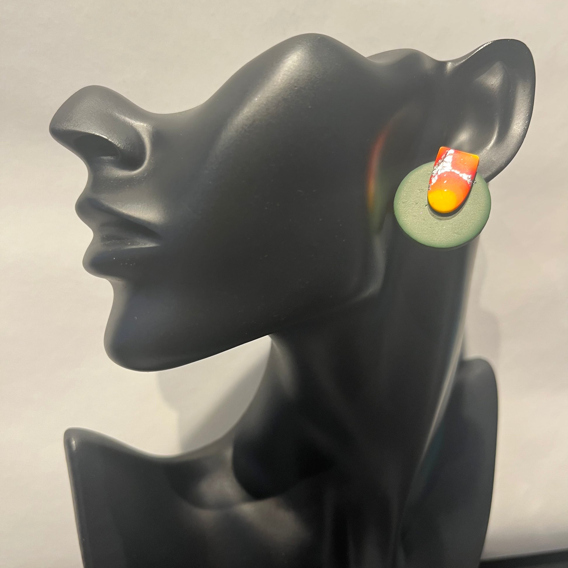 Matériau : argile polymère, finition en résine, clous d'oreille en acier inoxydable.