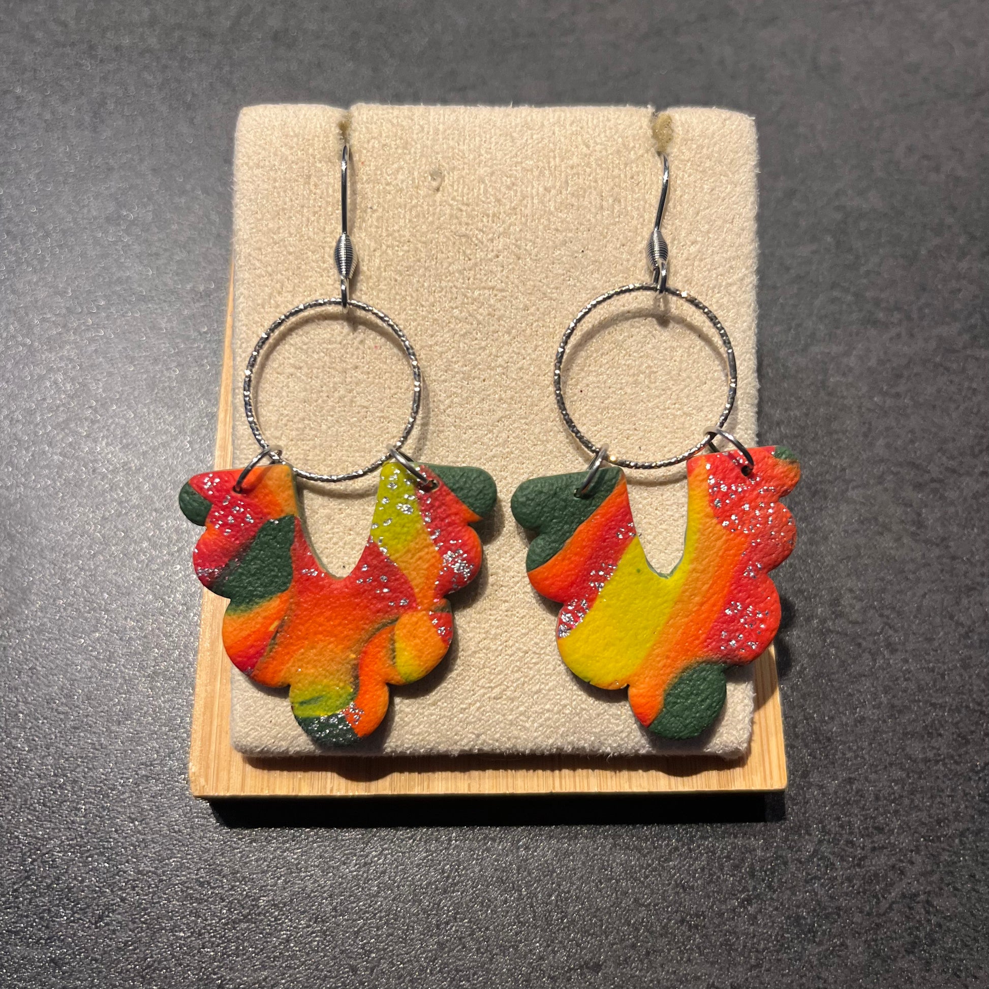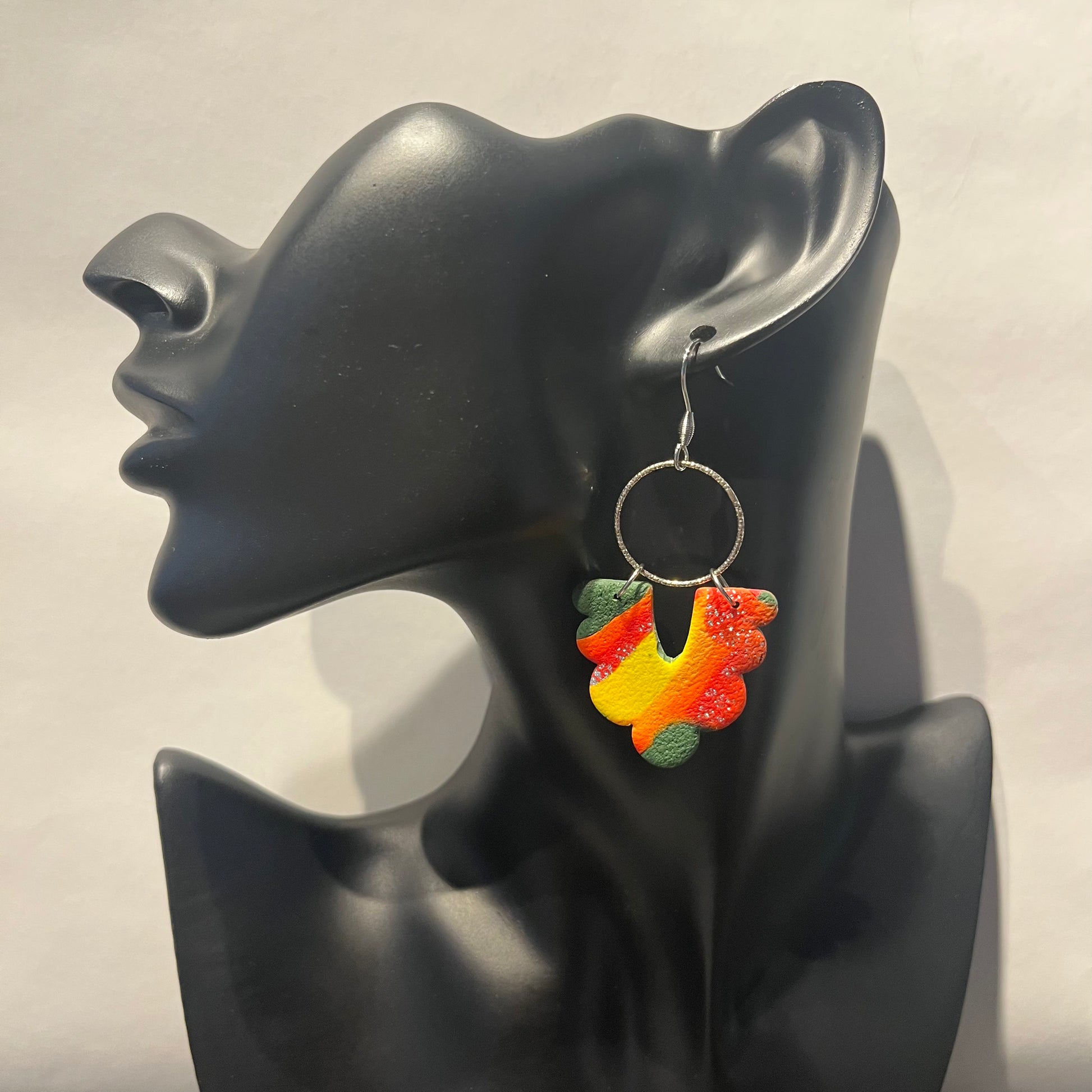 Matériau : argile polymère, cercle en argent et crochets d'oreille en acier inoxydable.