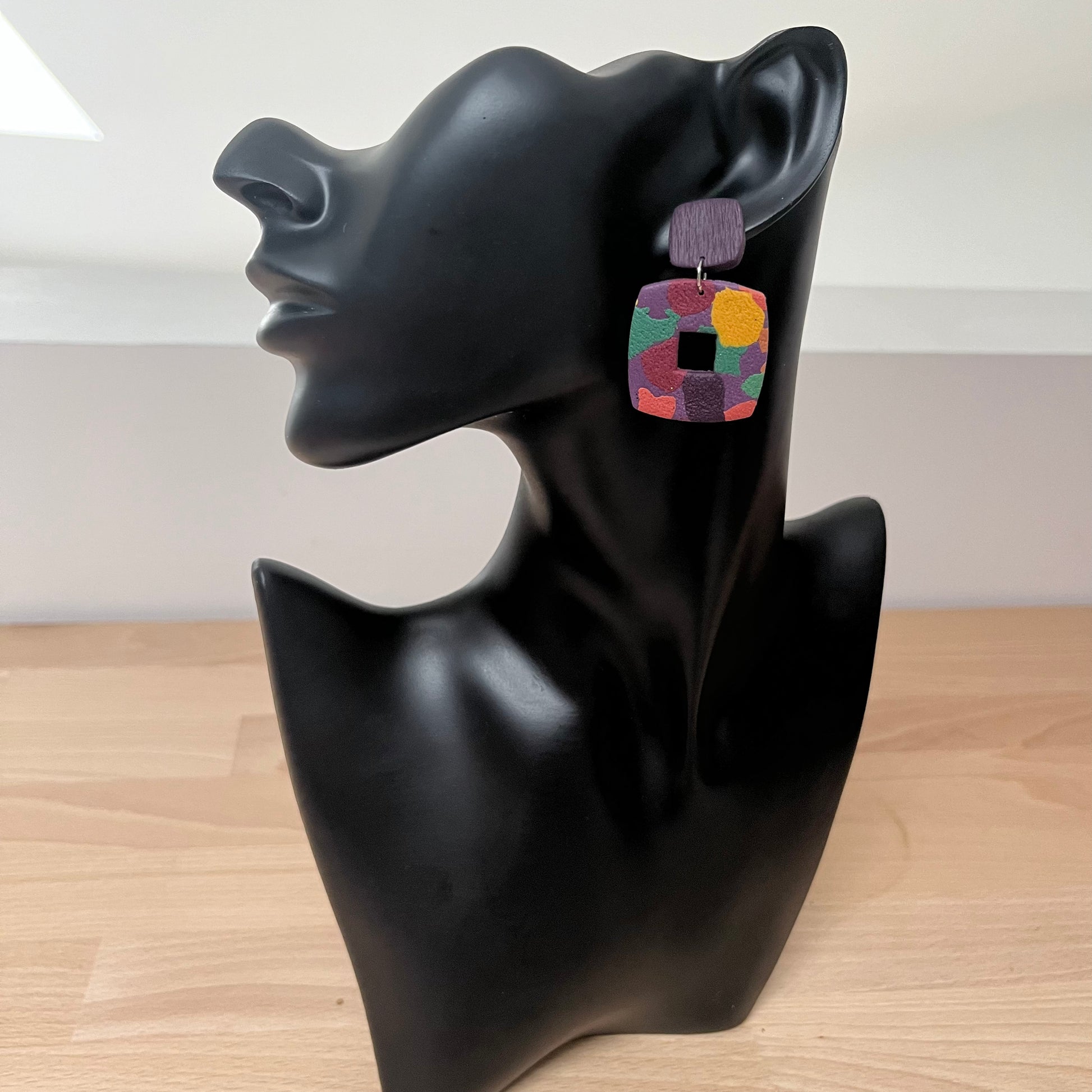 Matériau : argile polymère, clous d'oreille en acier inoxydable.