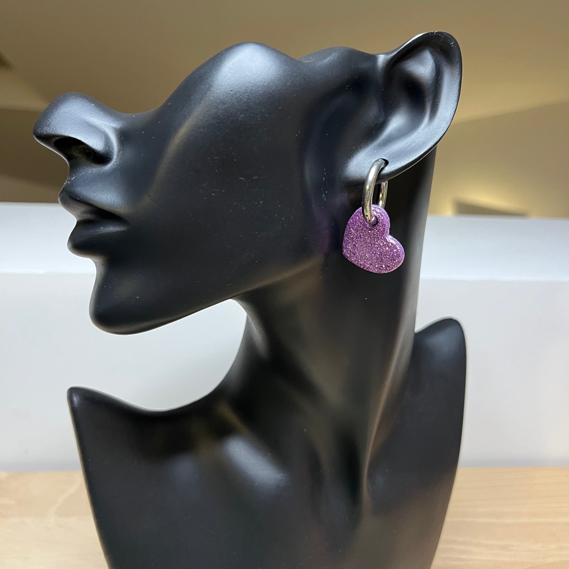Matériau : argile polymère, finition paillettes et résine, créoles en acier inoxydable.