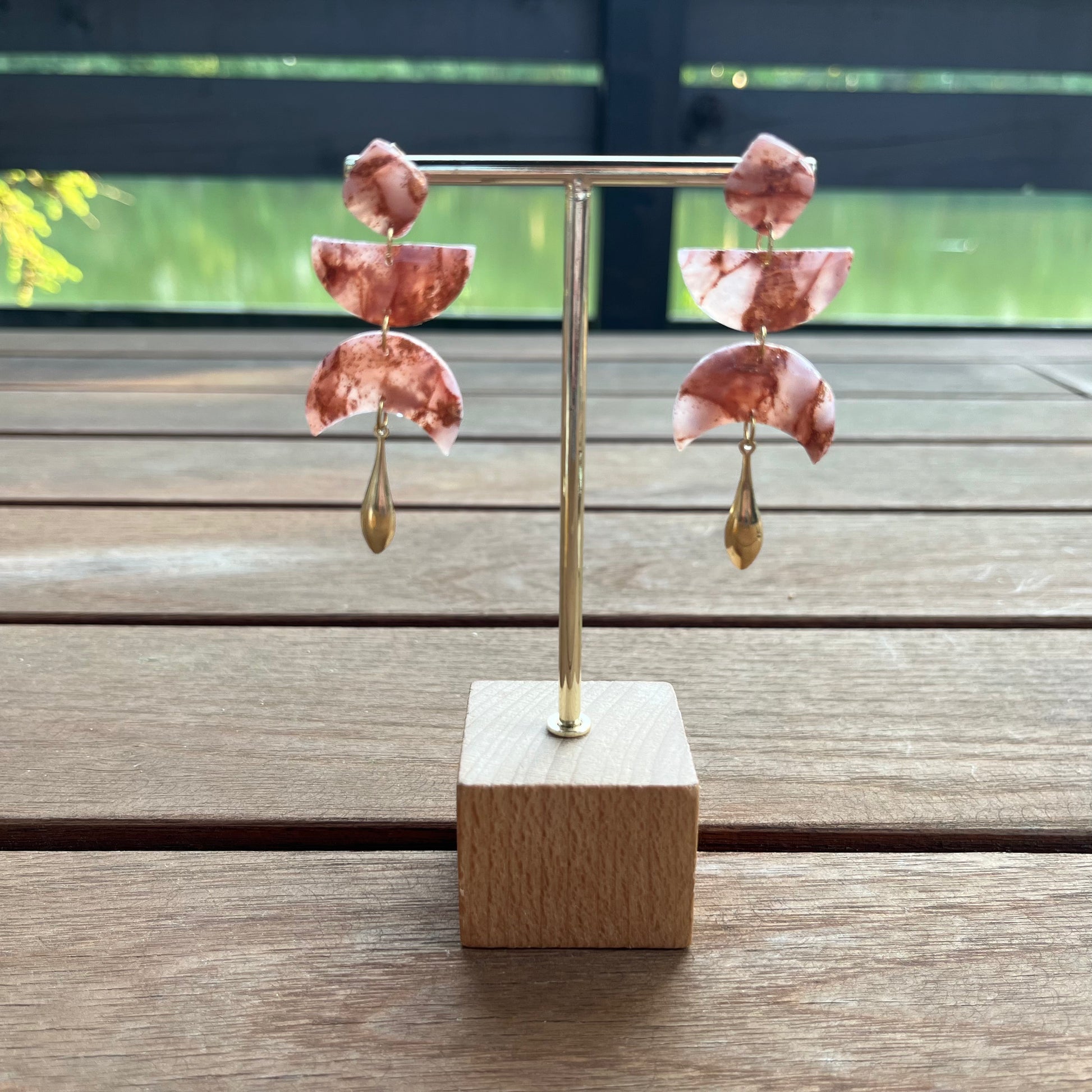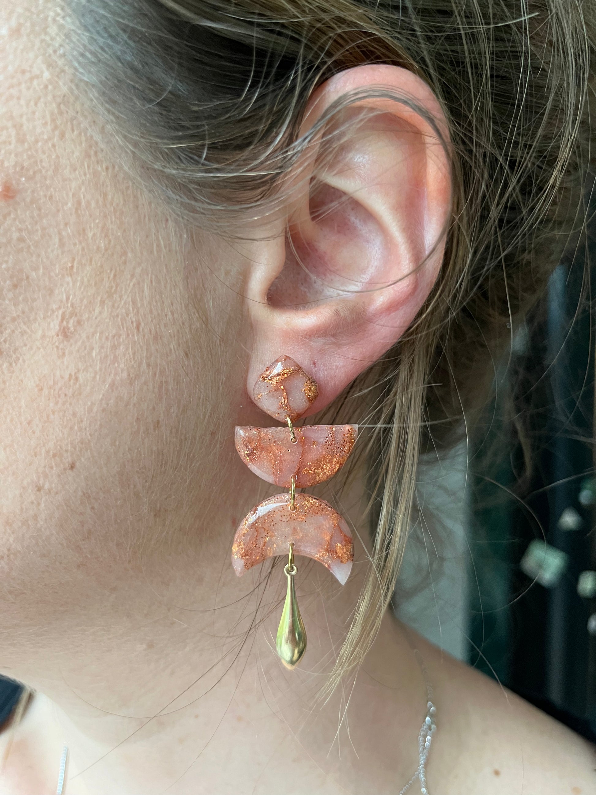 Matériau : argile polymère, finition en résine. Clous d'oreille dorés à l'or fin.