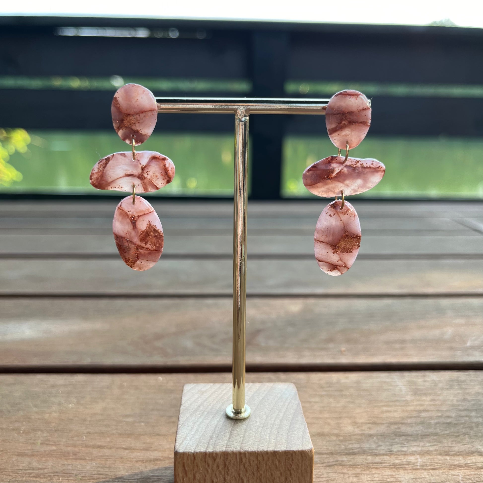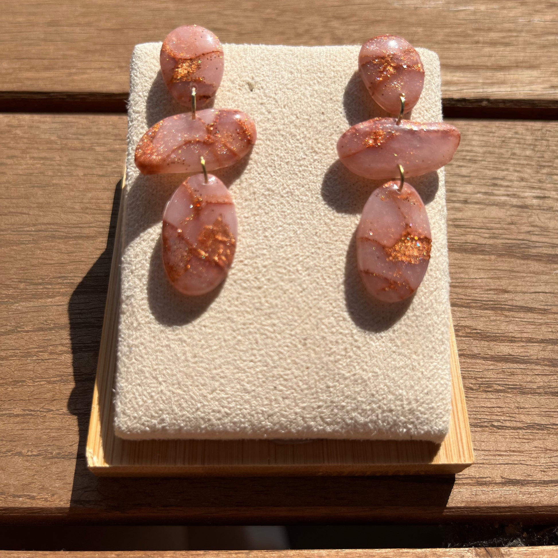 Matériau : argile polymère, finition en résine. Clous d'oreille dorés à l'or fin.