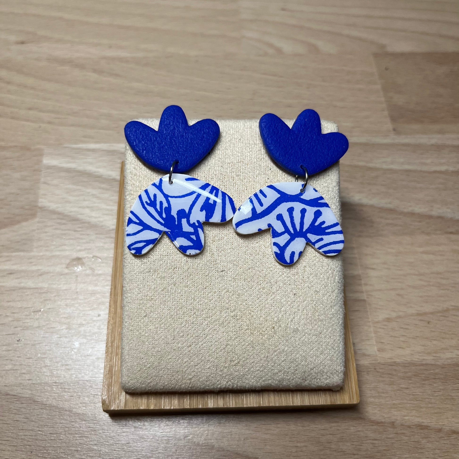 Matériau : argile polymère, finition en résine, clous d'oreille en acier inoxydable.