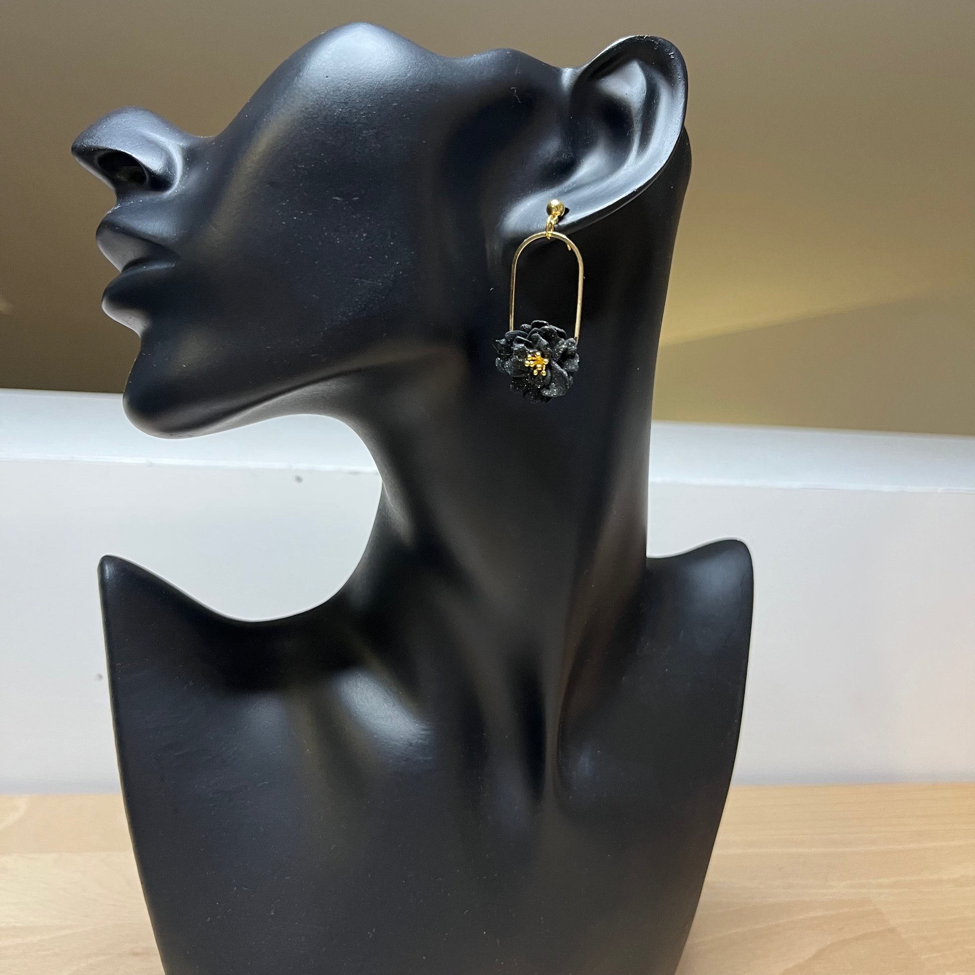 Matériau : argile polymère, pièce de montage en laiton plaqué or (18K), clous d'oreille dorés à l'or fin.