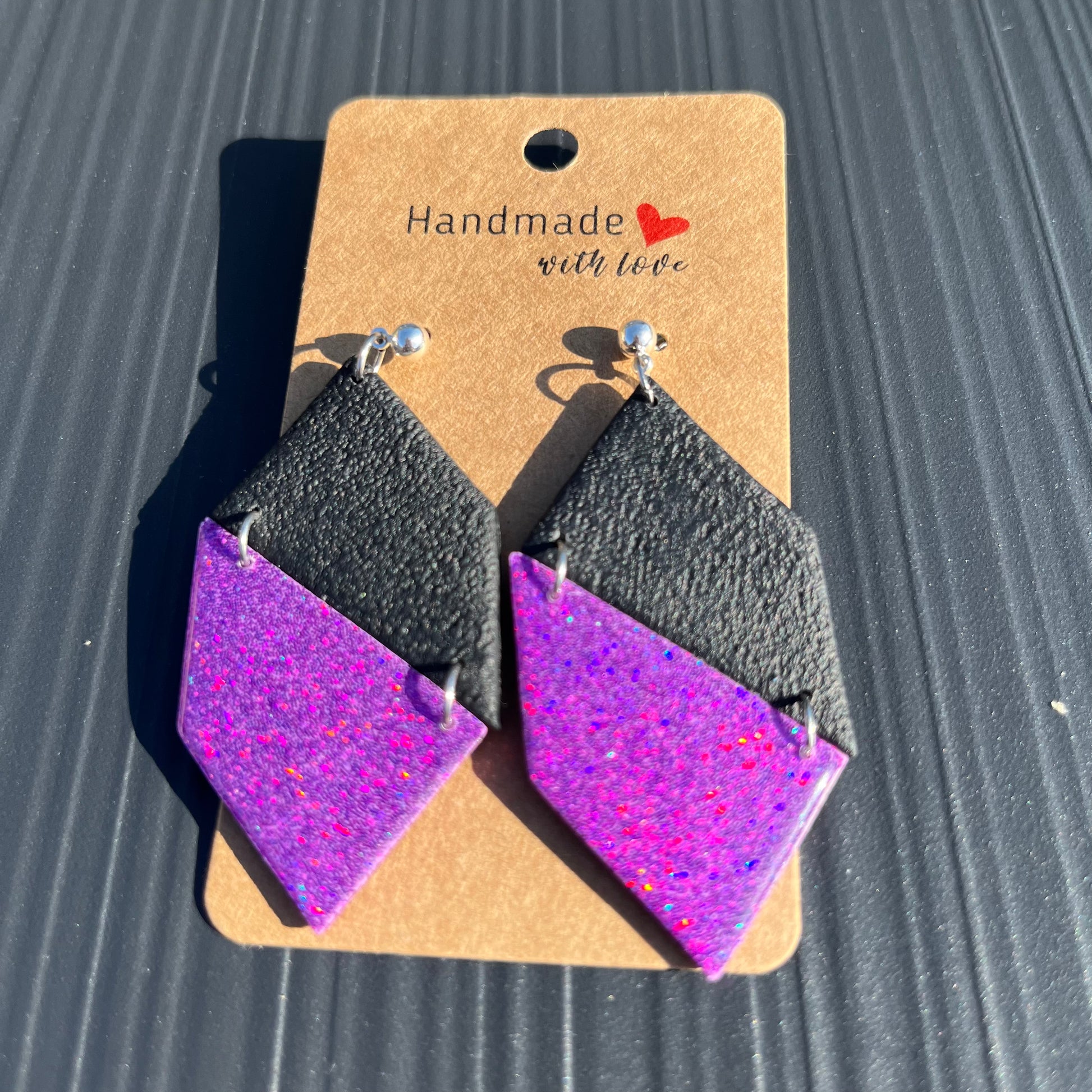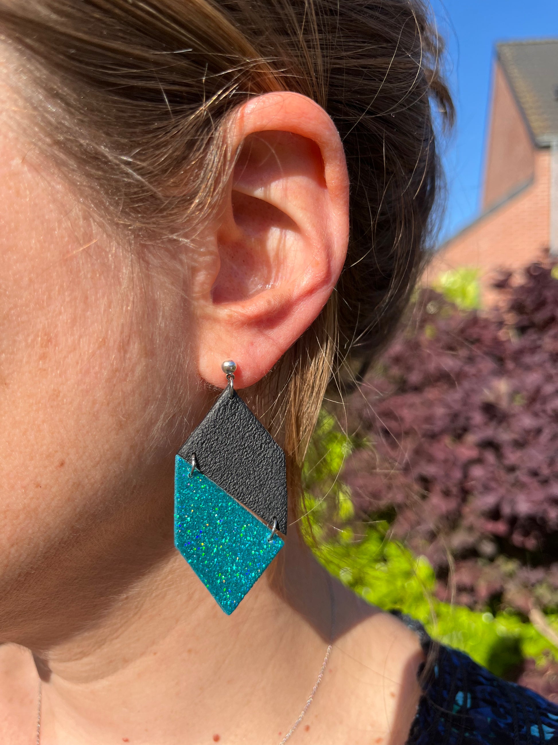 Matériau : argile polymère pailletée. Finition en résine. Clous d'oreille en argent.