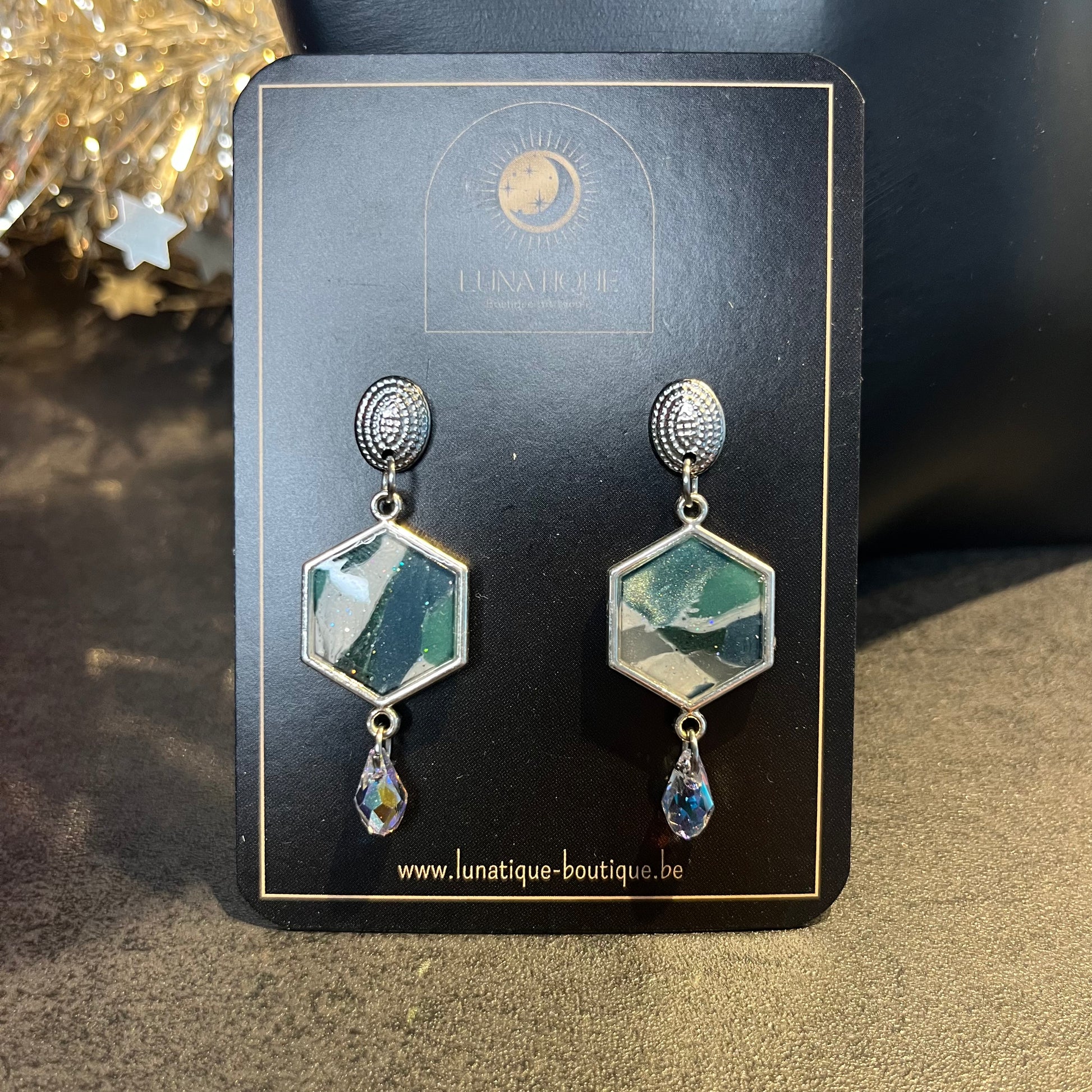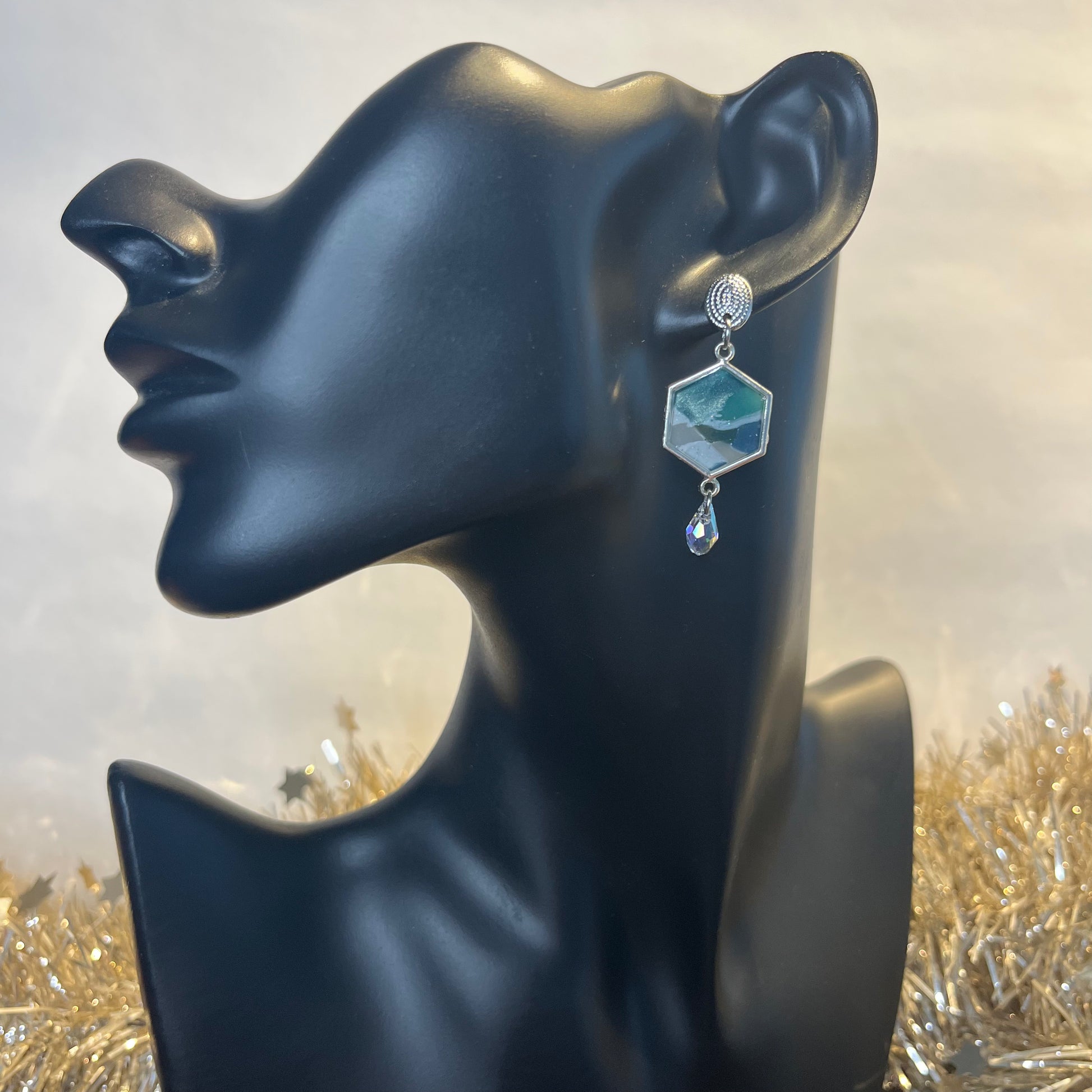 Matériau : argile polymère, finition en résine, clous d'oreille en acier inoxydable.