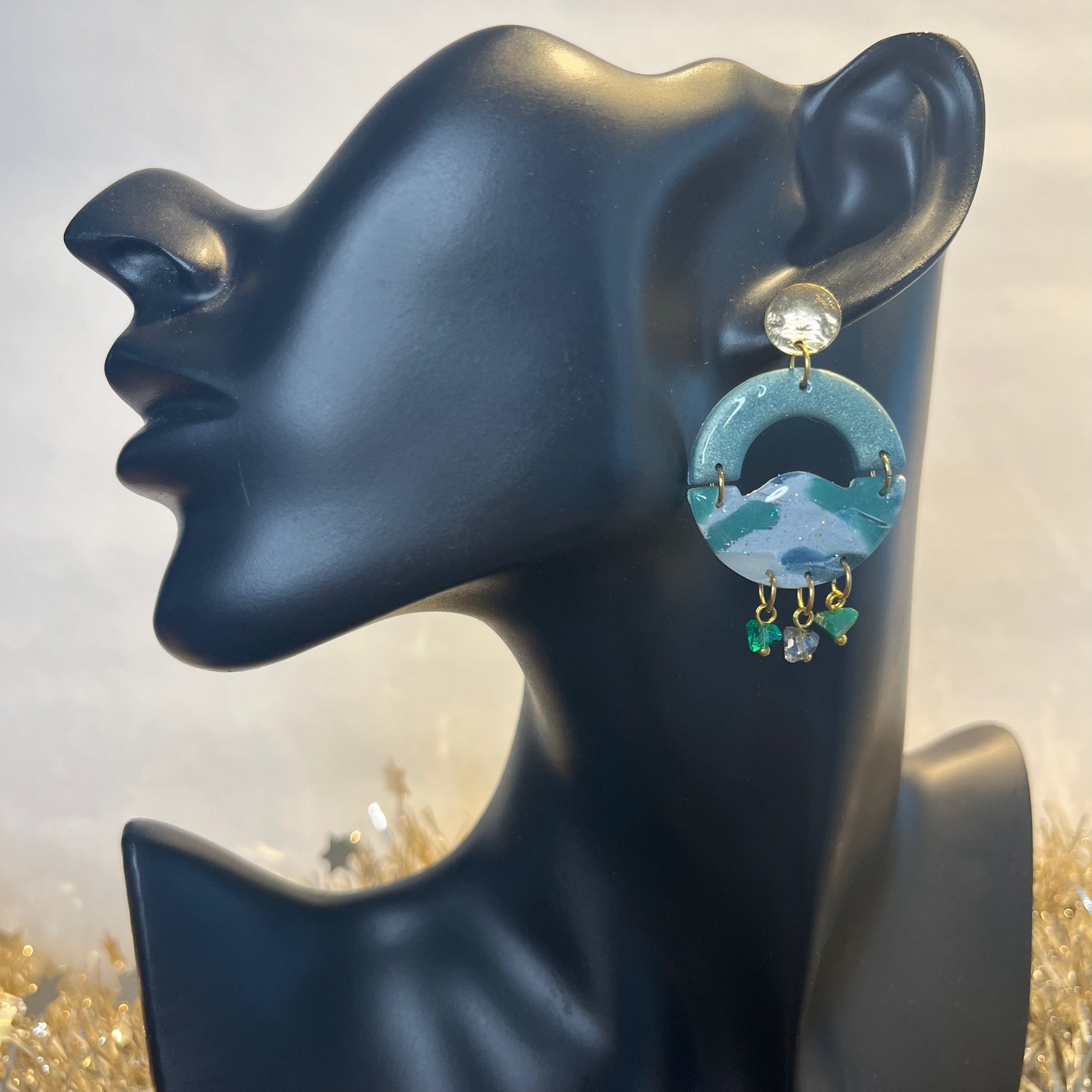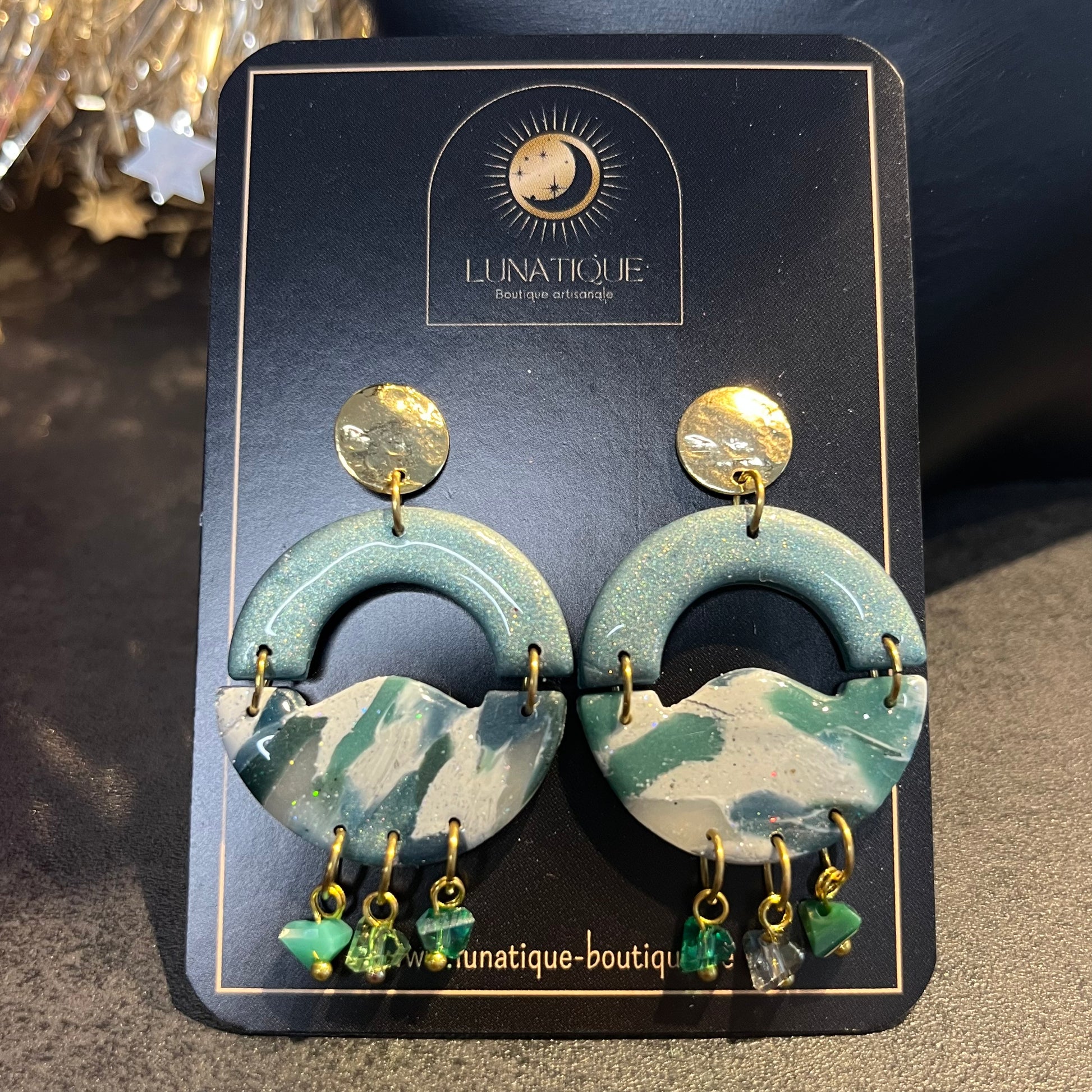 Matériau : argile polymère, finition en résine, clous d'oreille dorés à l'or fin.