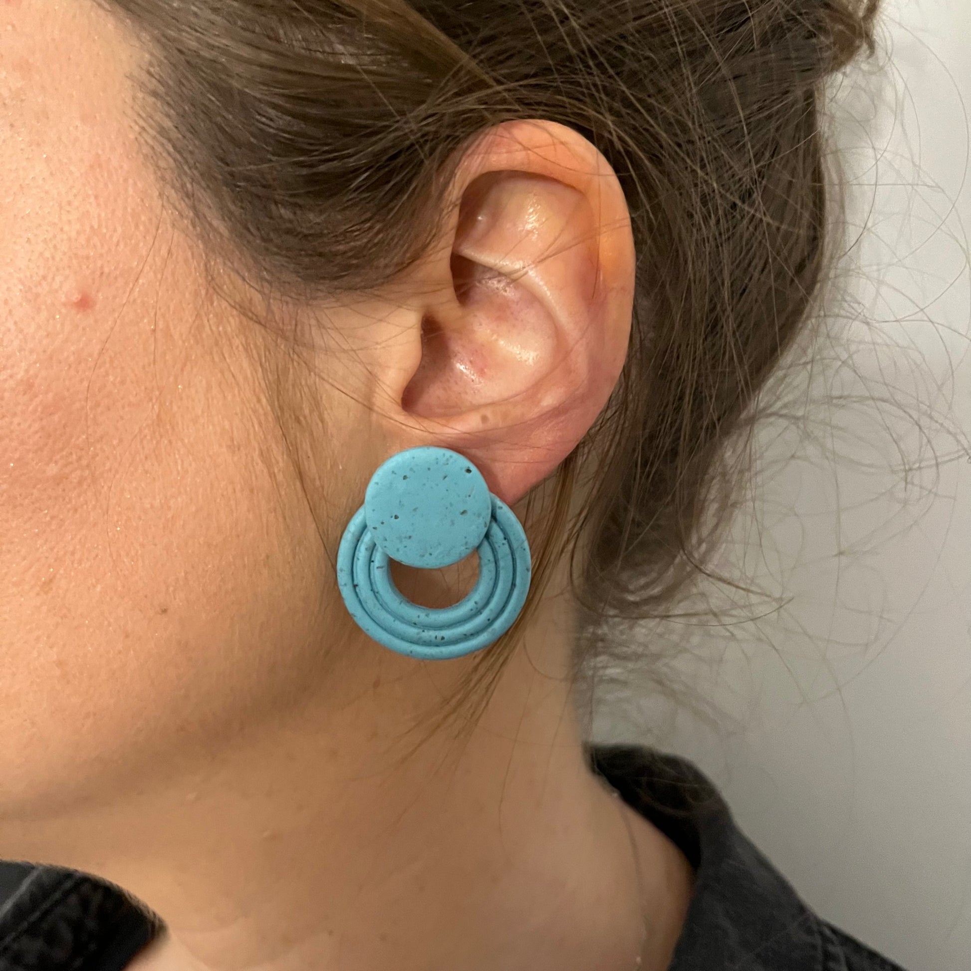 L'argile polymère est une pâte dense mais souple qui peut être modelée, sculptée, peinte… Après cuisson, cette pâte devient résistante tout en gardant sa légèreté, permettant de créer des boucles d’oreilles de toutes tailles faciles et confortables à porter.