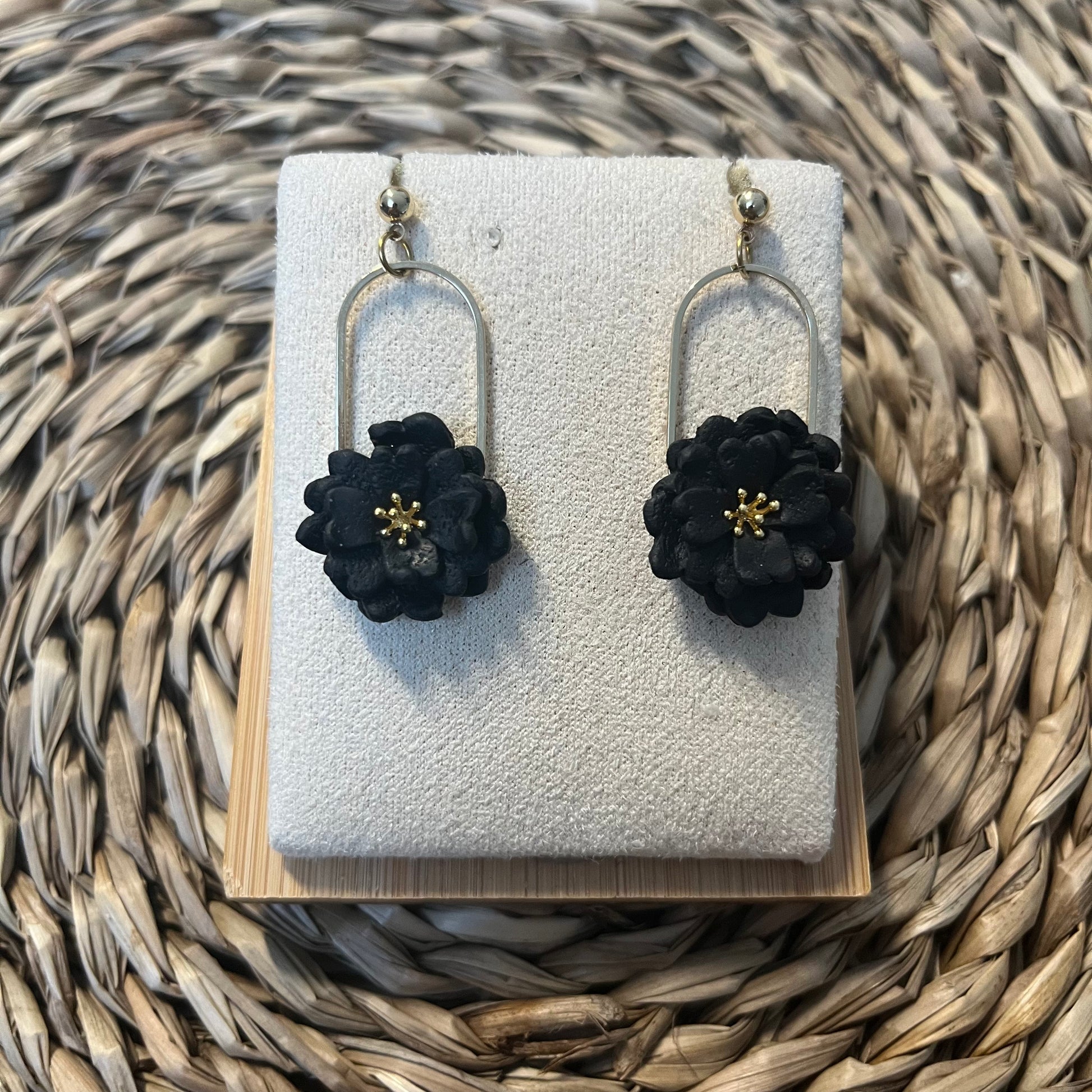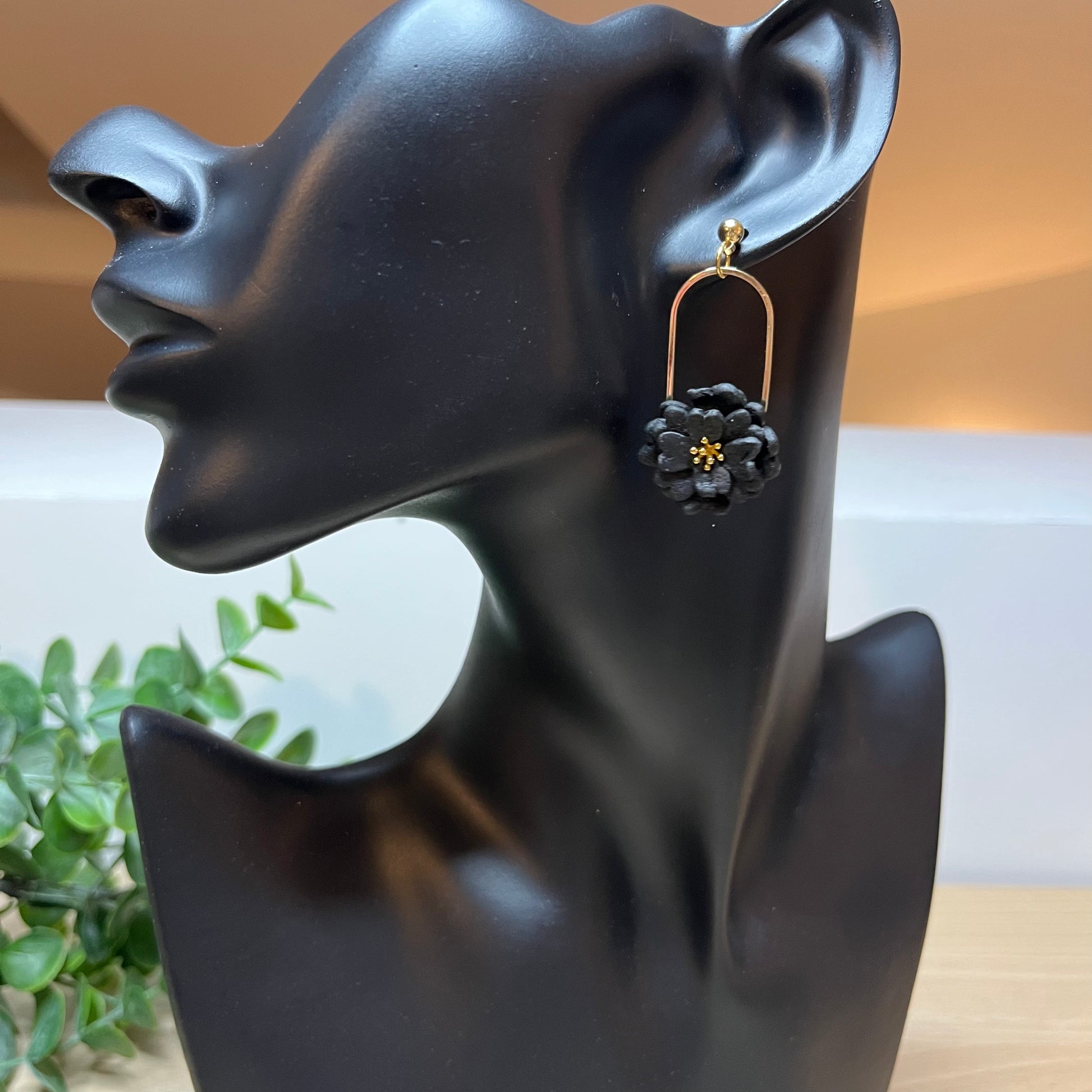 Matériau : argile polymère, pièce de montage en laiton plaqué or (18K), clous d'oreille dorés à l'or fin.