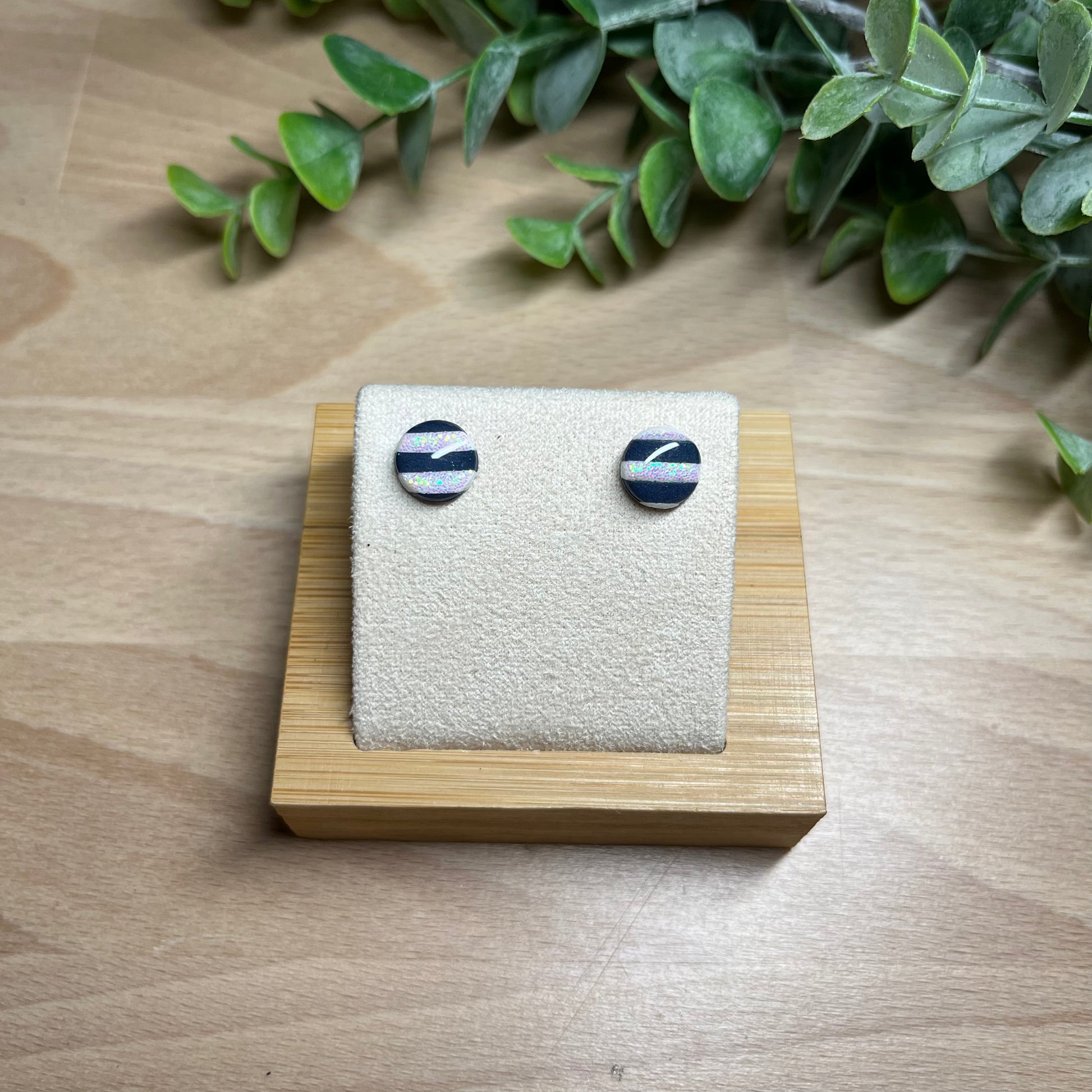 Matériau : argile polymère, clous d'oreille en argent, finition résine.
