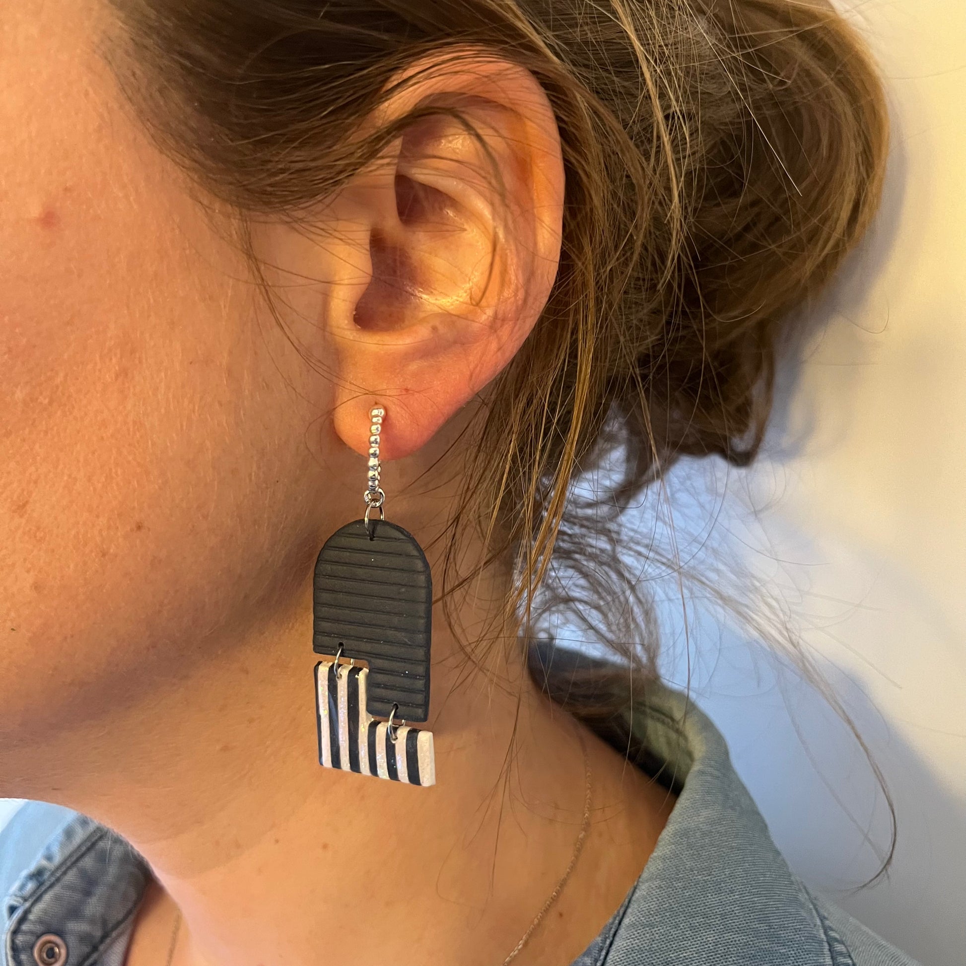 Matériau : argile polymère, créoles en argent, finition en résine.