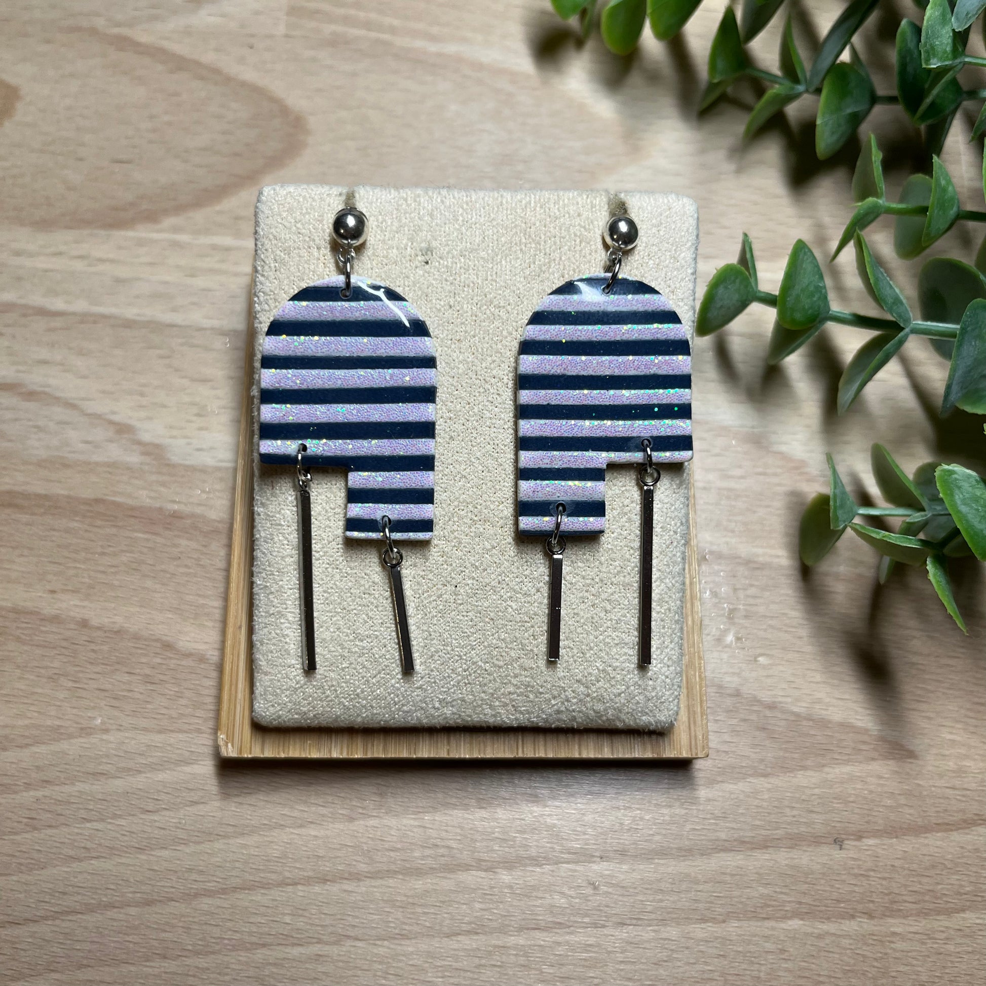 Matériau : argile polymère, clous d'oreilles en argent, finition en résine.