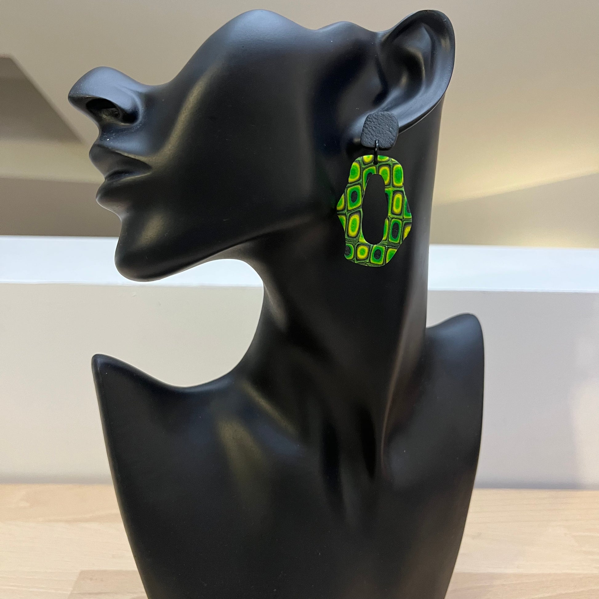 Matériau : argile polymère, clous d'oreille en acier inoxydable.