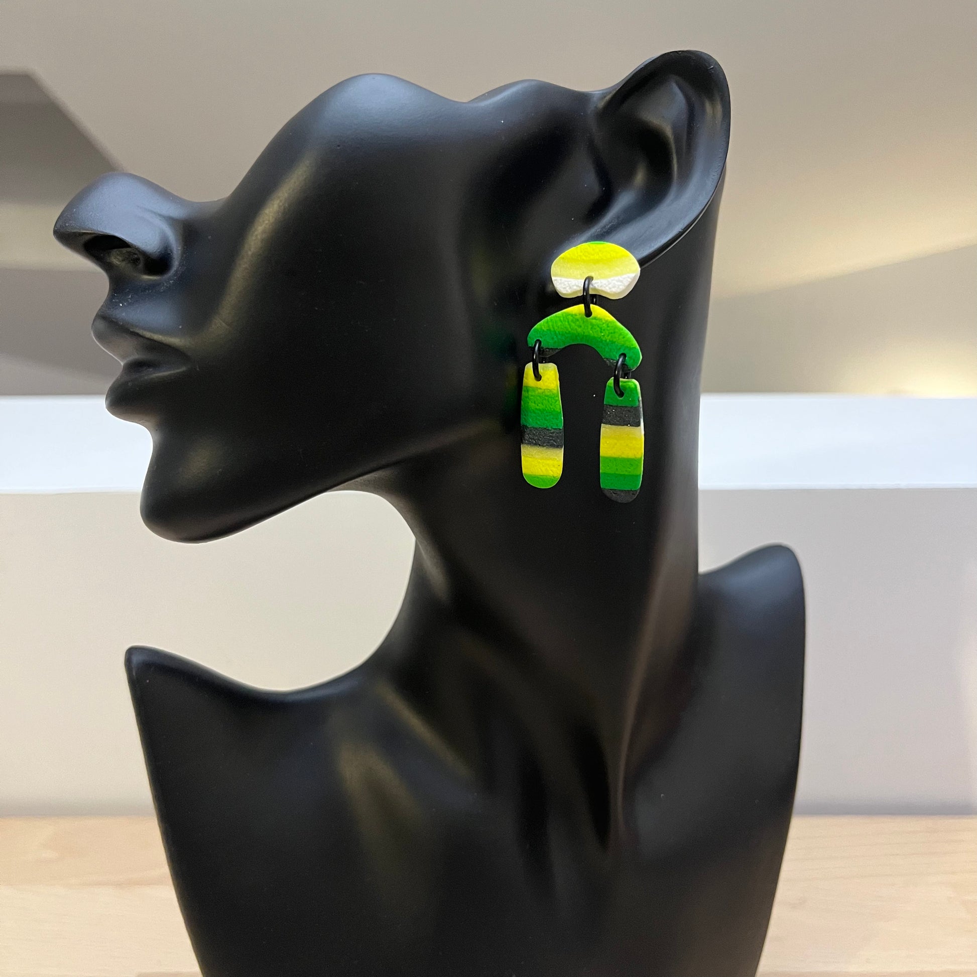 Matériau : argile polymère, clous d'oreille en acier inoxydable.