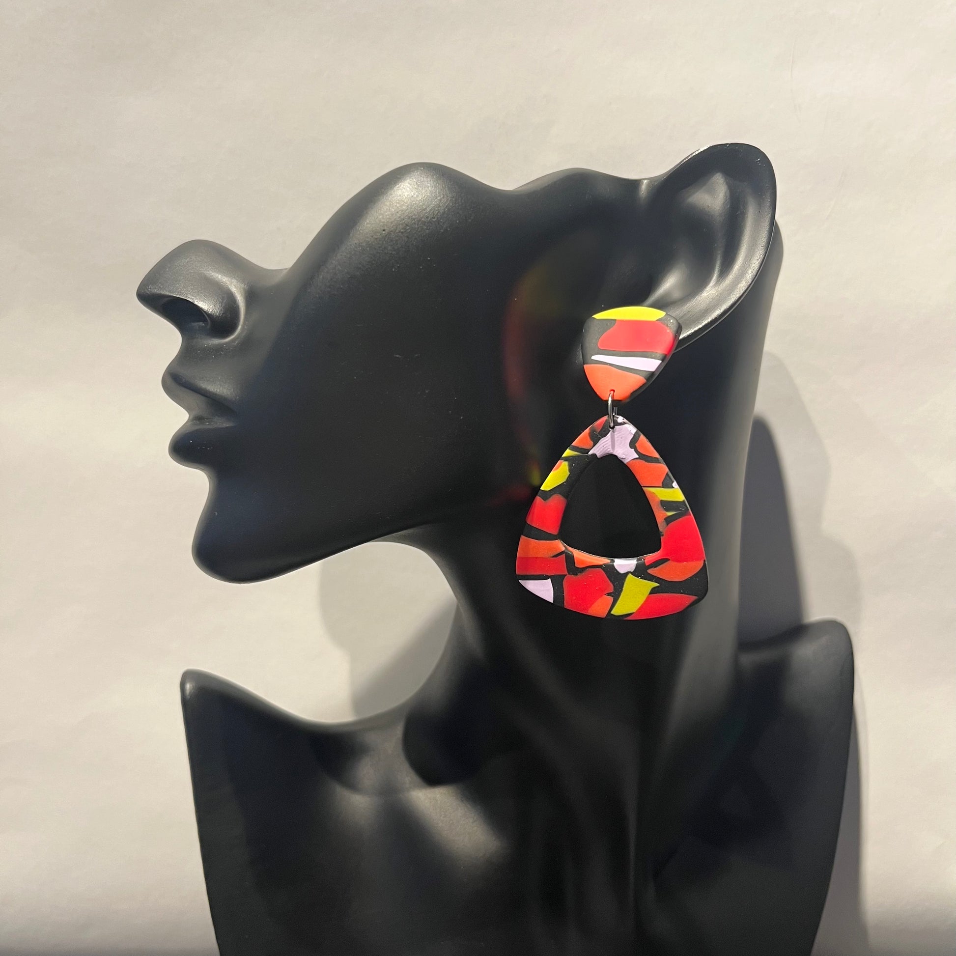 Matériau : argile polymère, finition en résine, clous d'oreille en acier inoxydable.
