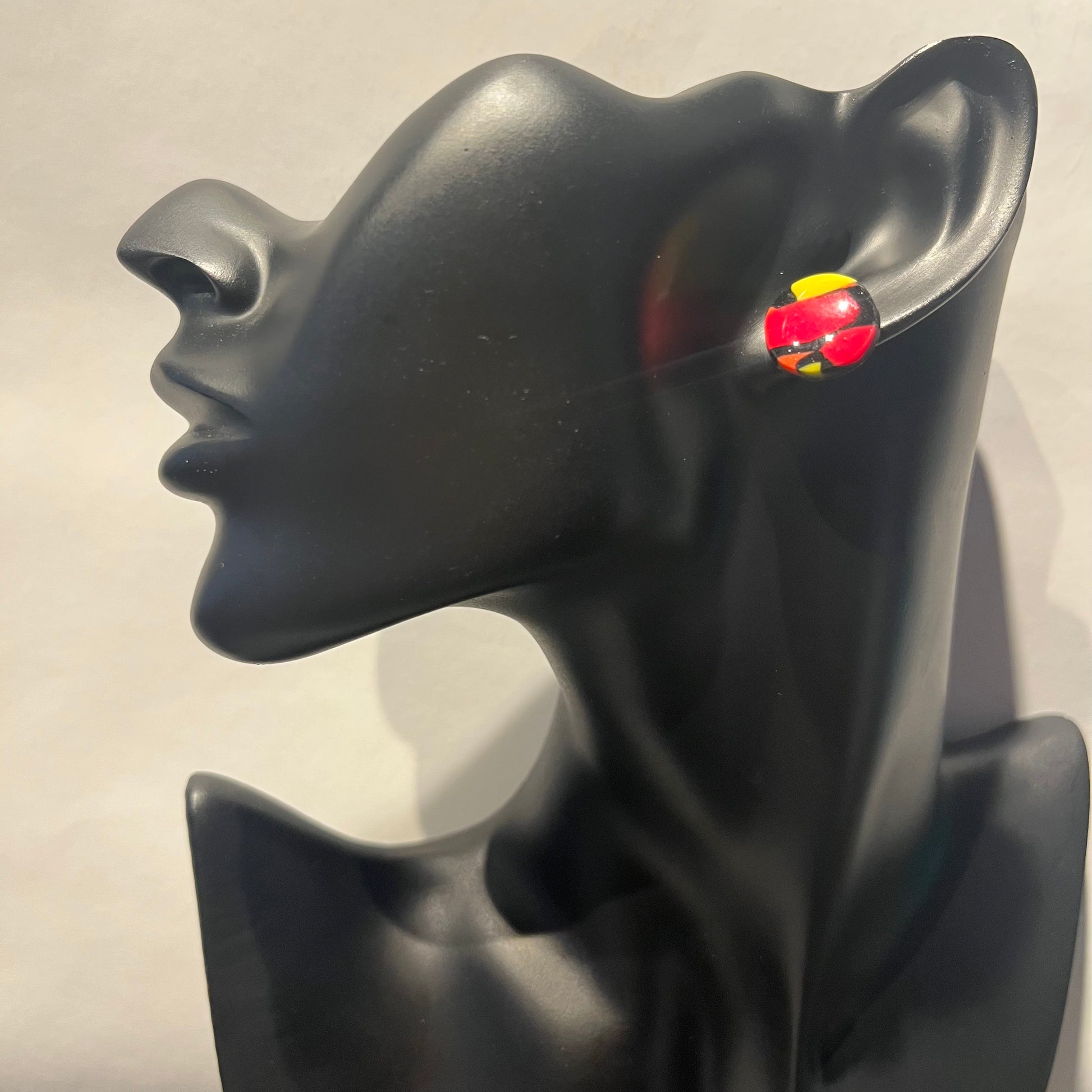Matériau : argile polymère, finition en résine, clous d'oreille en acier inoxydable.