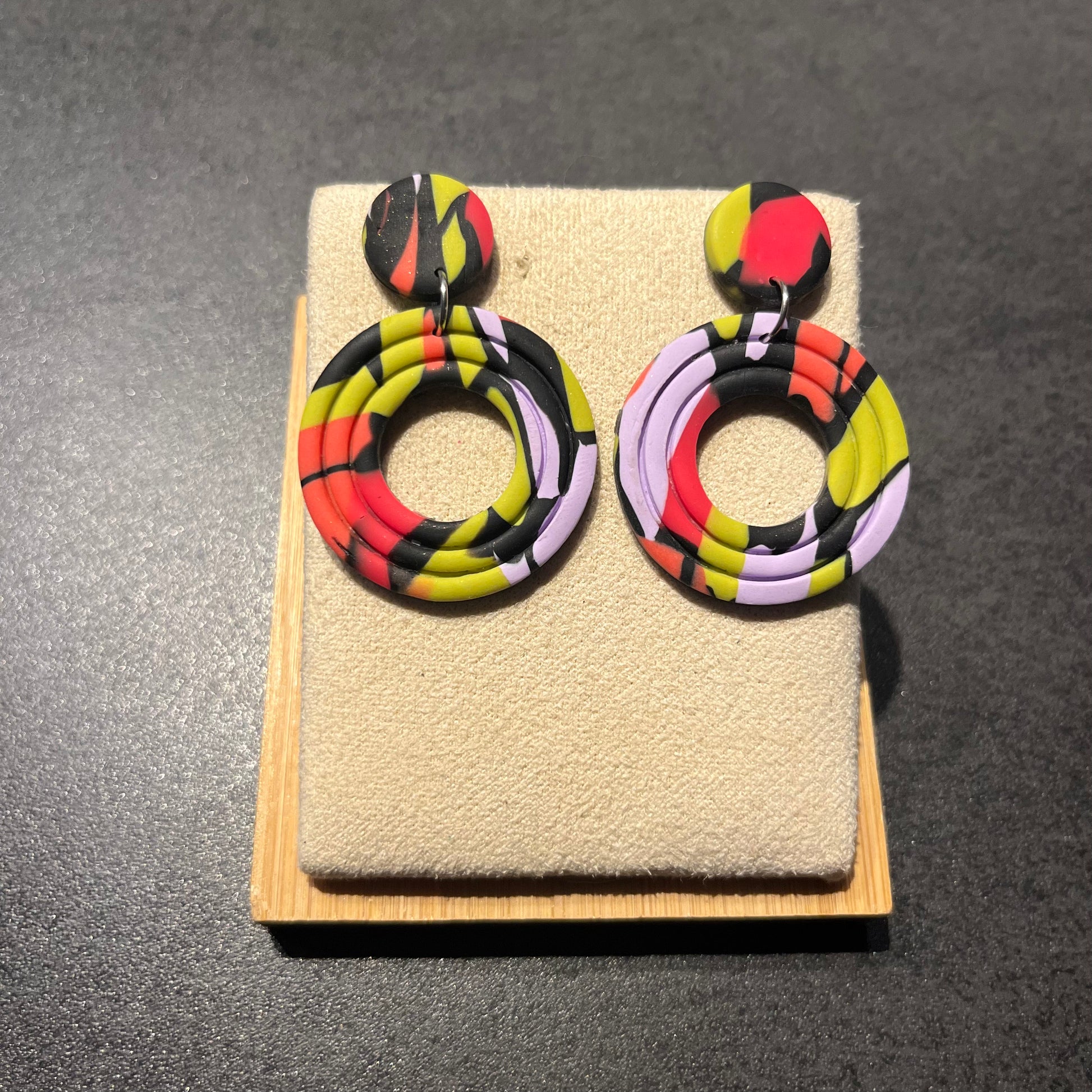 L'argile polymère est une pâte dense mais souple qui peut être modelée, sculptée, peinte… Après cuisson, cette pâte devient résistante tout en gardant sa légèreté, permettant de créer des boucles d’oreilles de toutes tailles faciles et confortables à porter.
