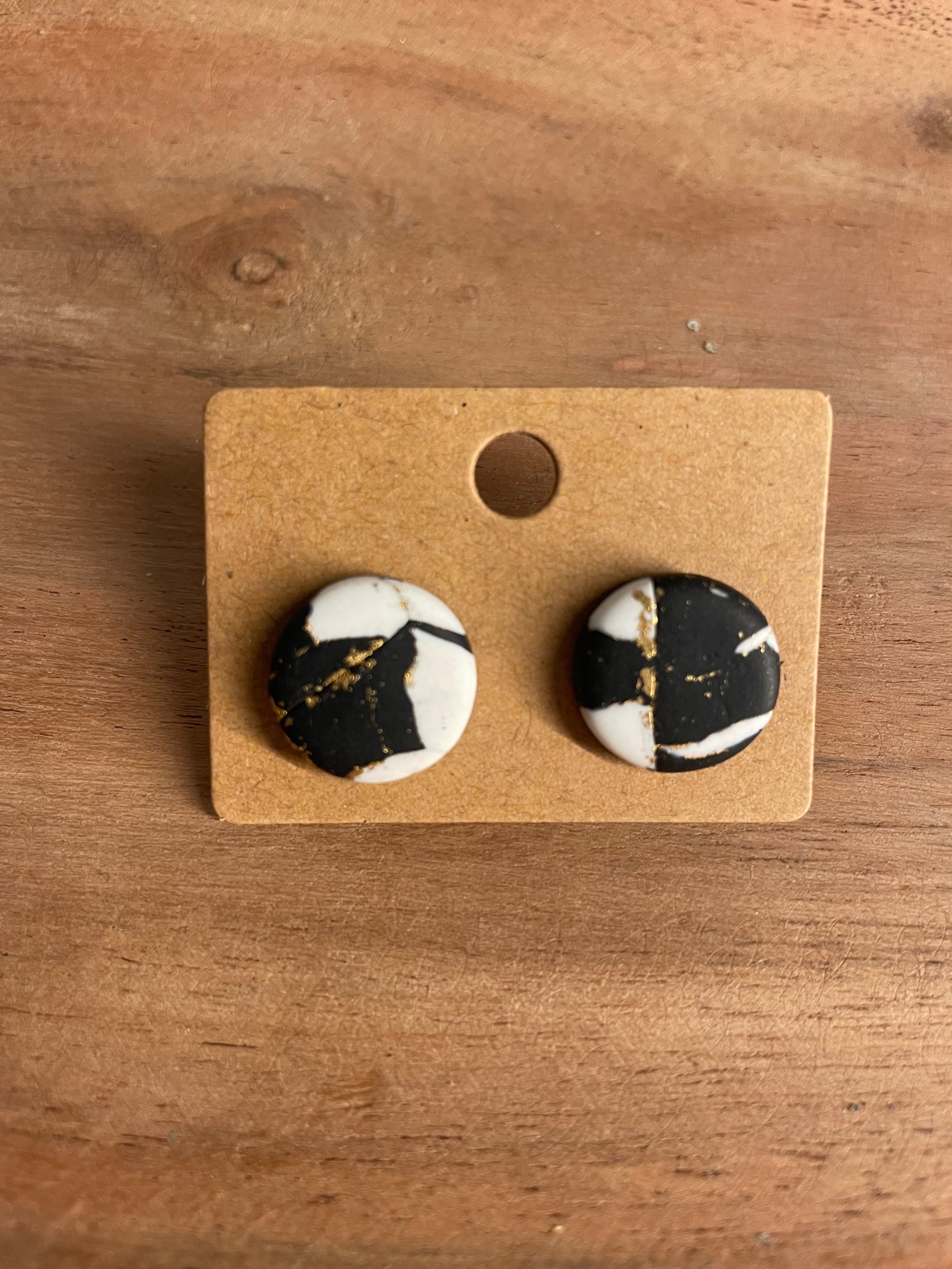 Matériau : argile polymère, feuille d'or, clous d'oreille dorés à l'or fin.