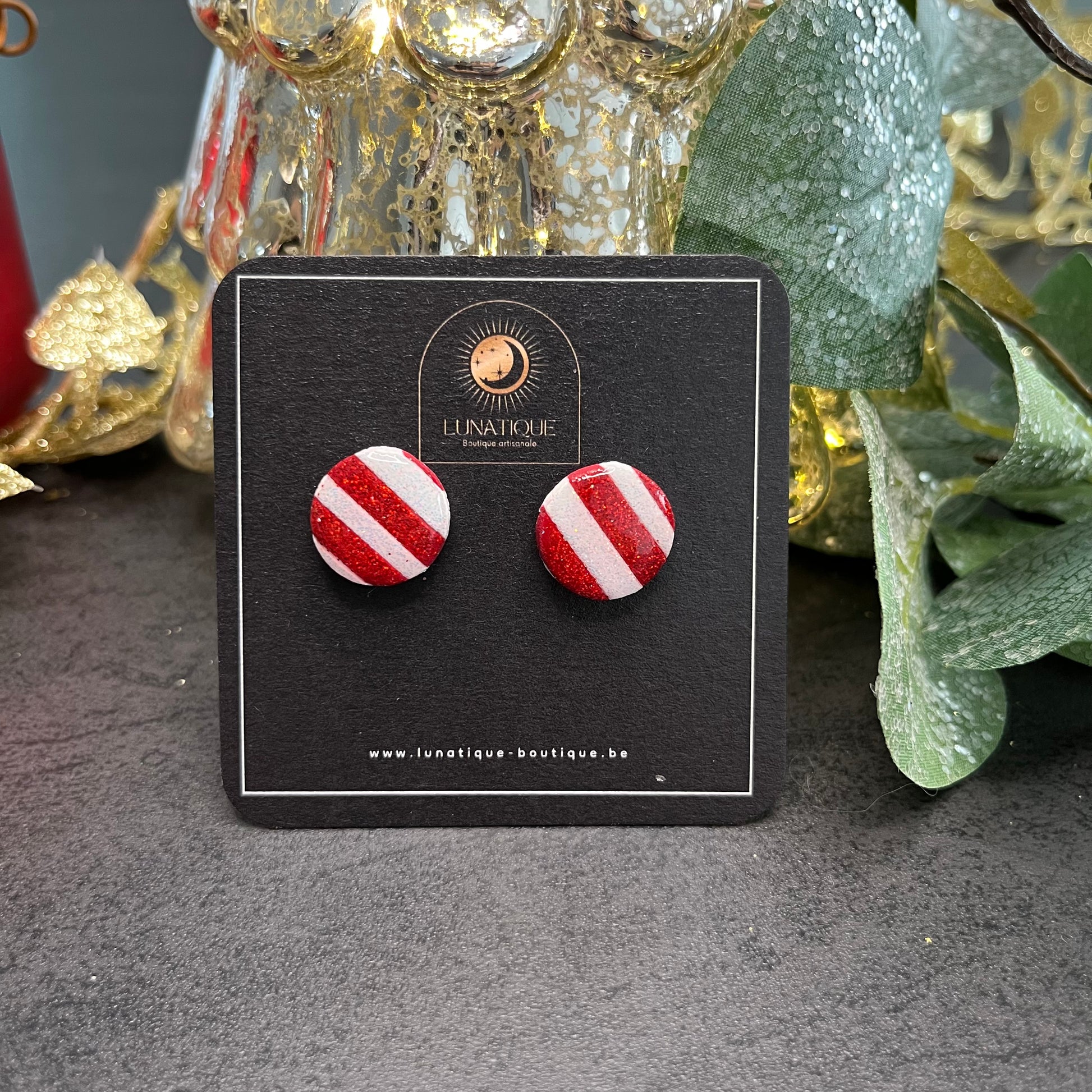 Matériau : argile polymère, finition paillettes et résine, clous d'oreille en acier inoxydable.