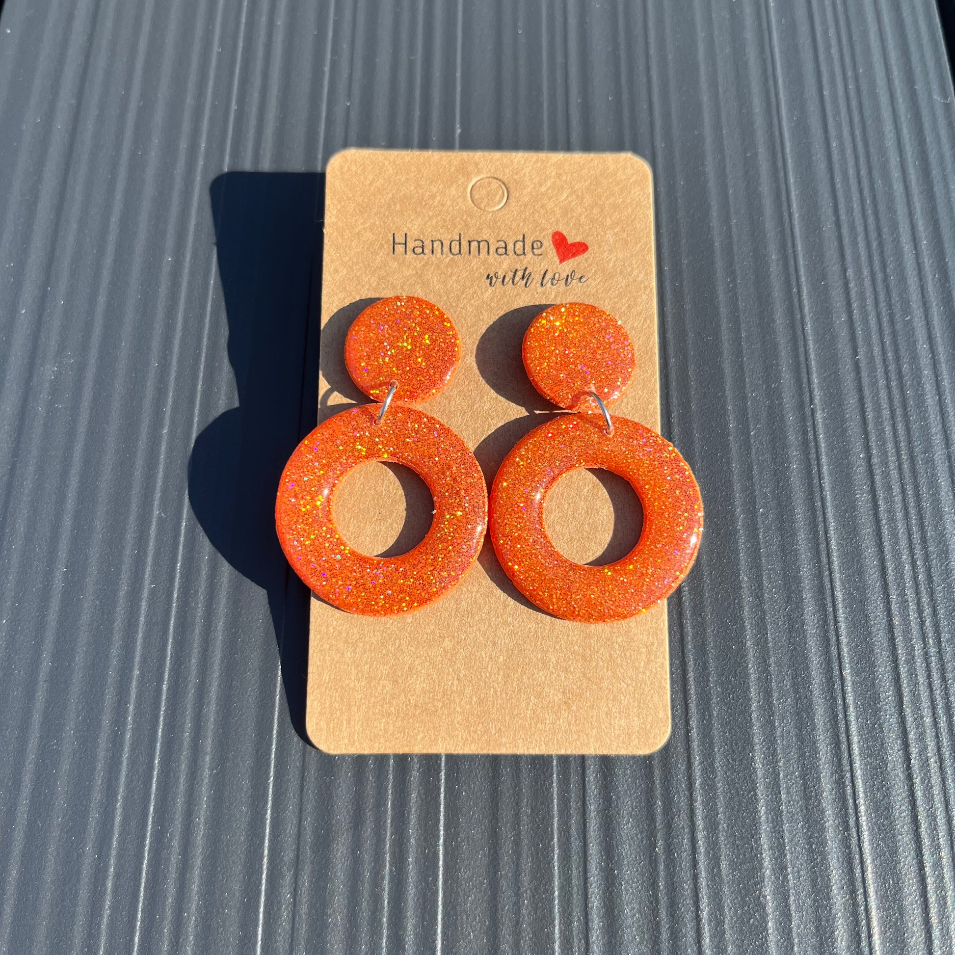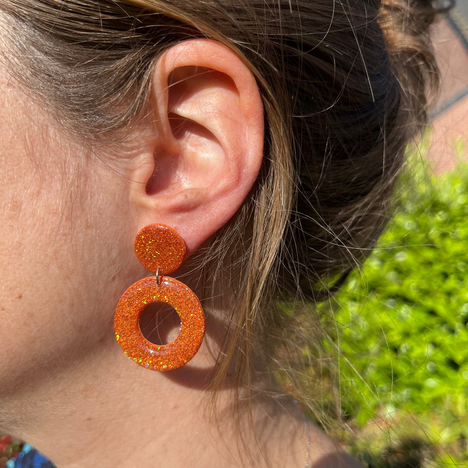 Matériau : argile polymère pailletée. Finition en résine. Clous d'oreille en argent.