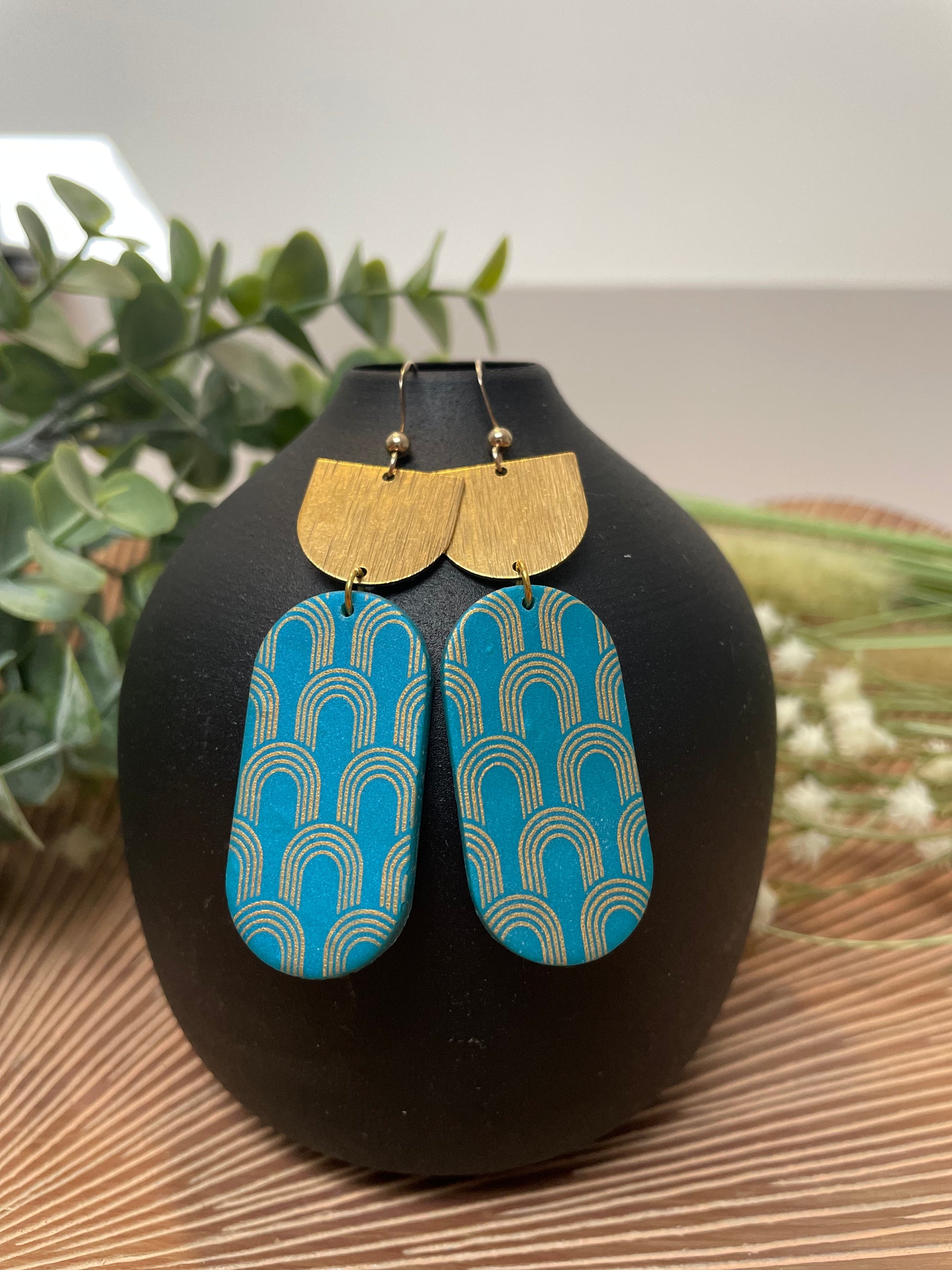 Matériau : argile polymère, pièces de montage en laiton, crochets d'oreille dorés à l'or fin.