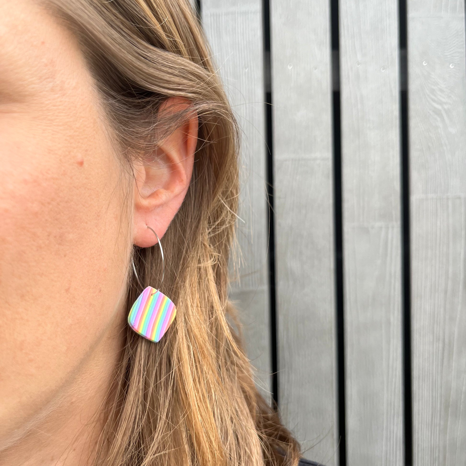 Matériau : argile polymère, créoles en acier inoxydable.