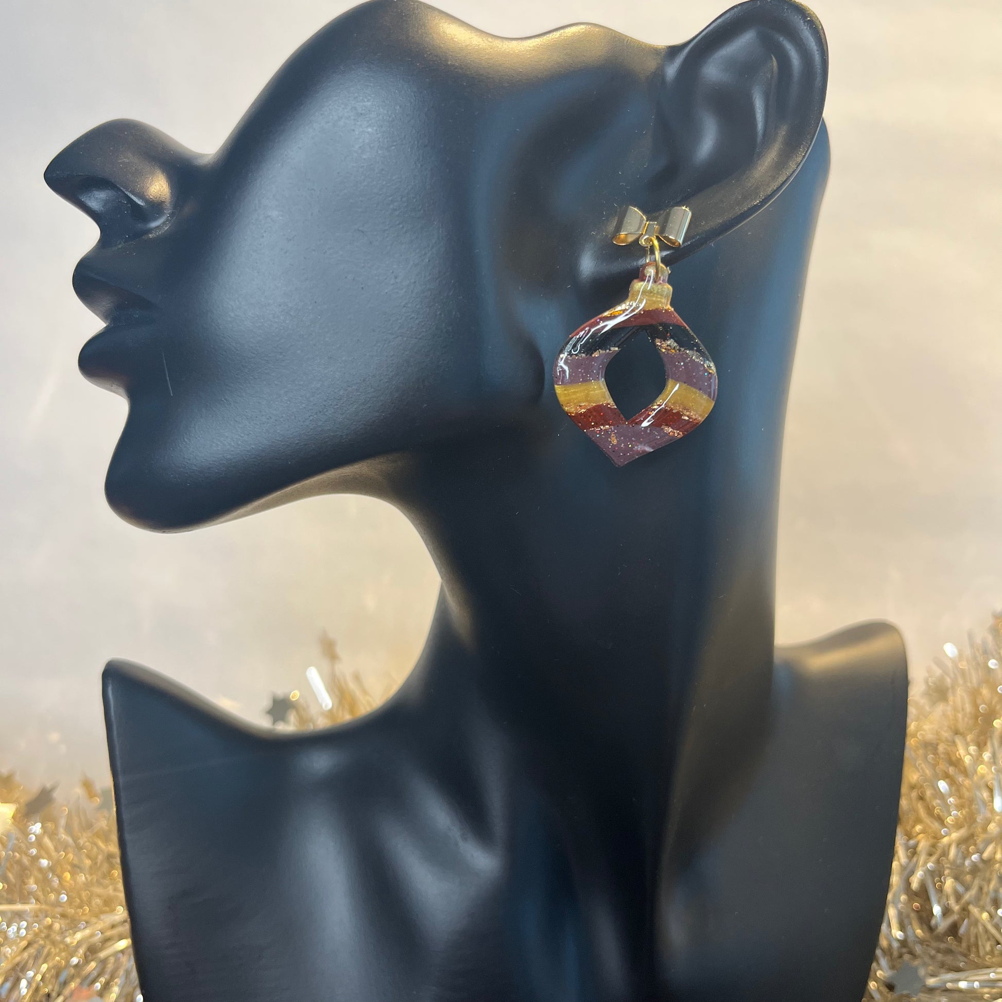 Matériau : argile polymère, finition en résine, clous d'oreille dorés à l'or fin.
