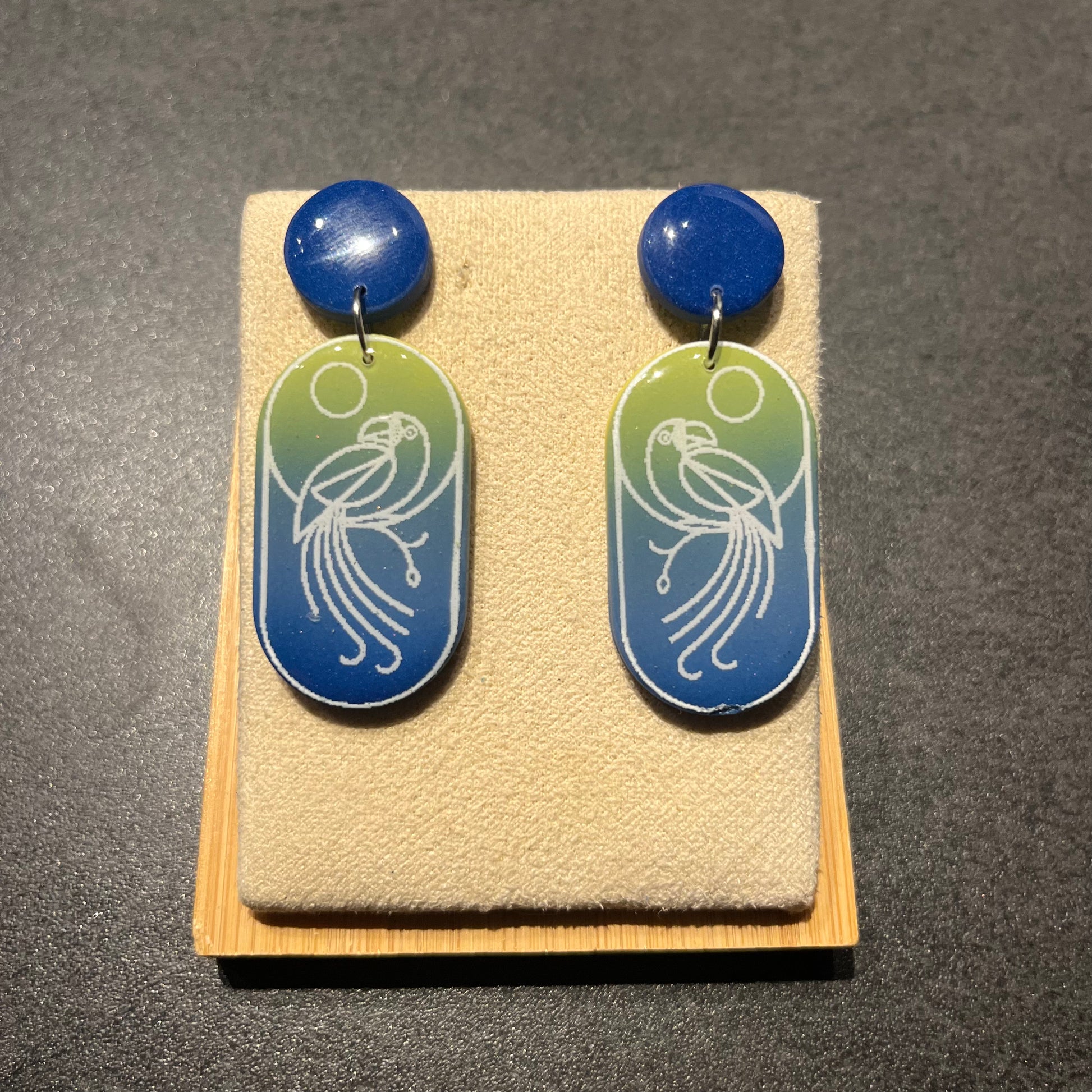 Matériau : argile polymère, finition en résine, clous d'oreille en acier inoxydable.