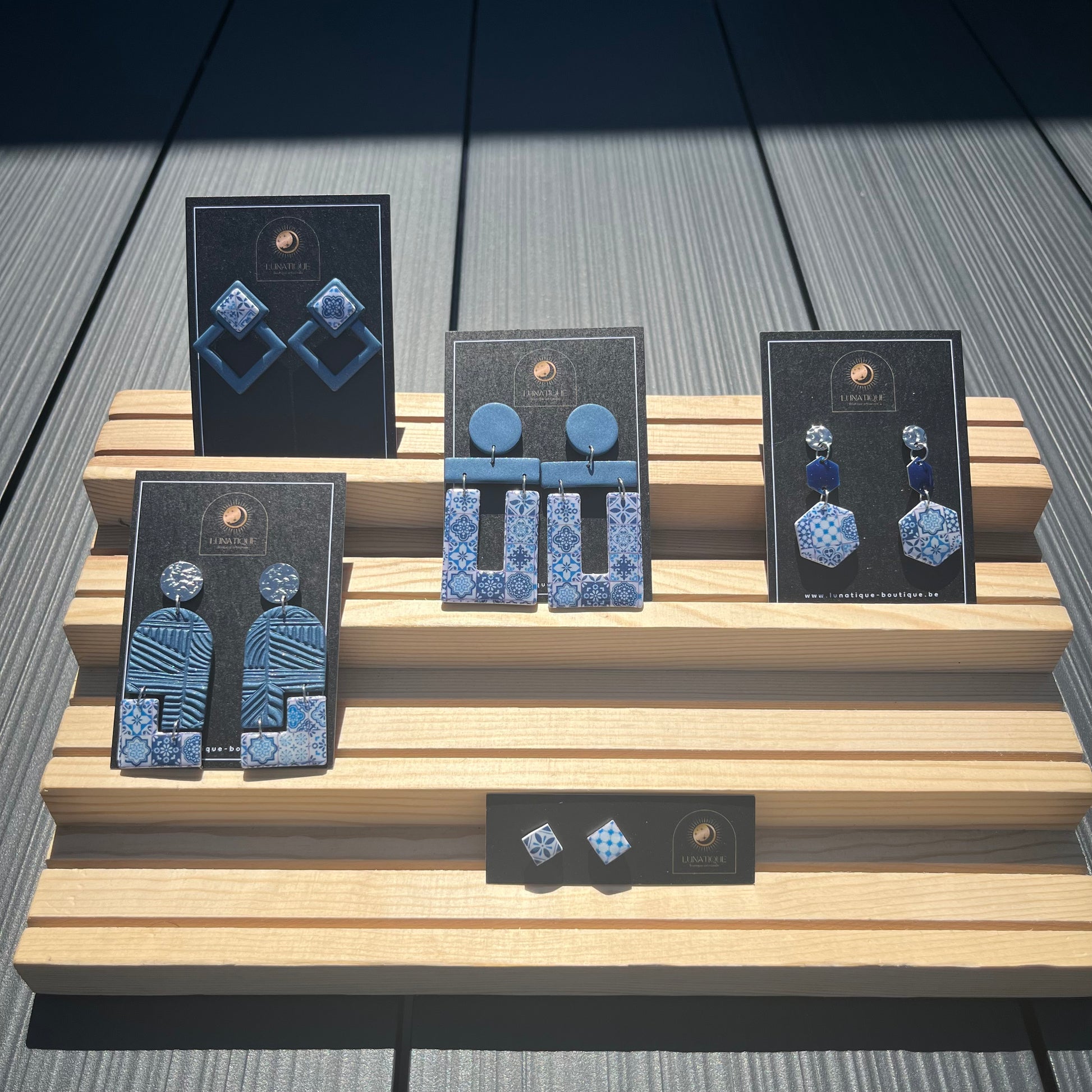 Matériau : argile polymère, finition résine, clous d'oreille en acier inoxydable.
