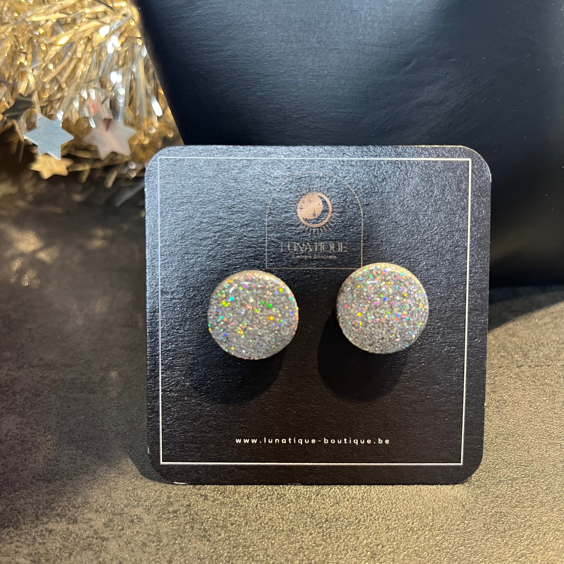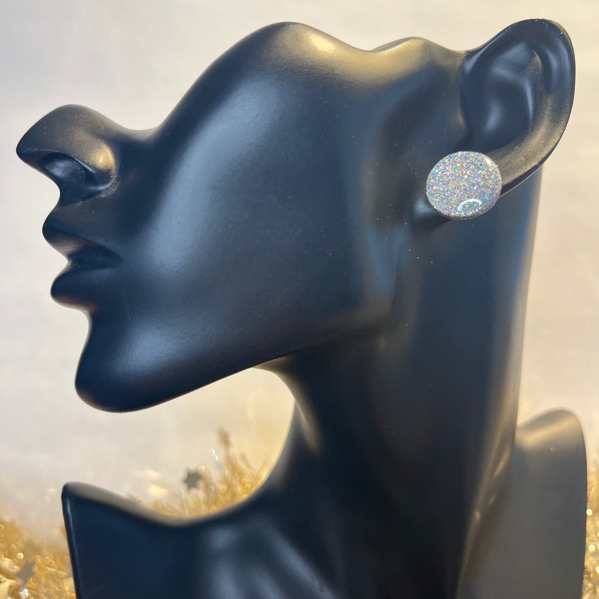 Matériau : argile polymère, finition en résine, clous d'oreille en acier inoxydable.