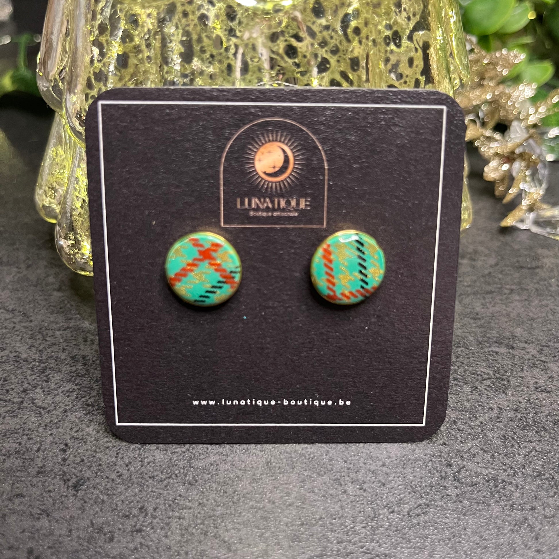 Matériau : argile polymère, finition résine, clous d'oreille en acier inoxydable doré.
