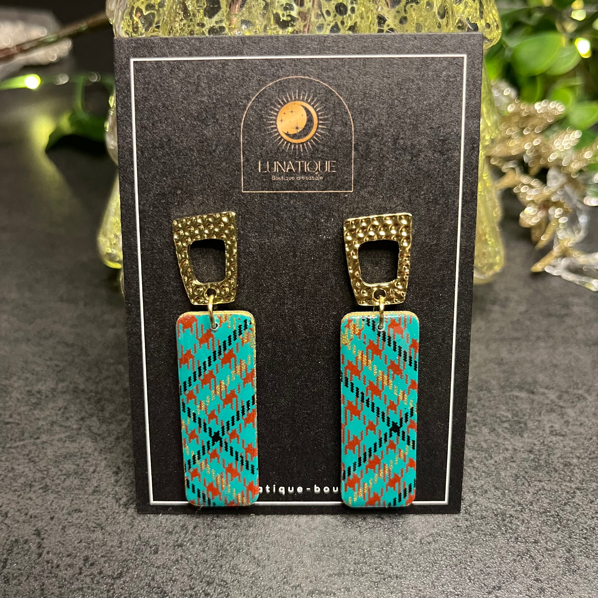 Matériau : argile polymère, finition résine, clous d'oreille dorés à l'or fin.