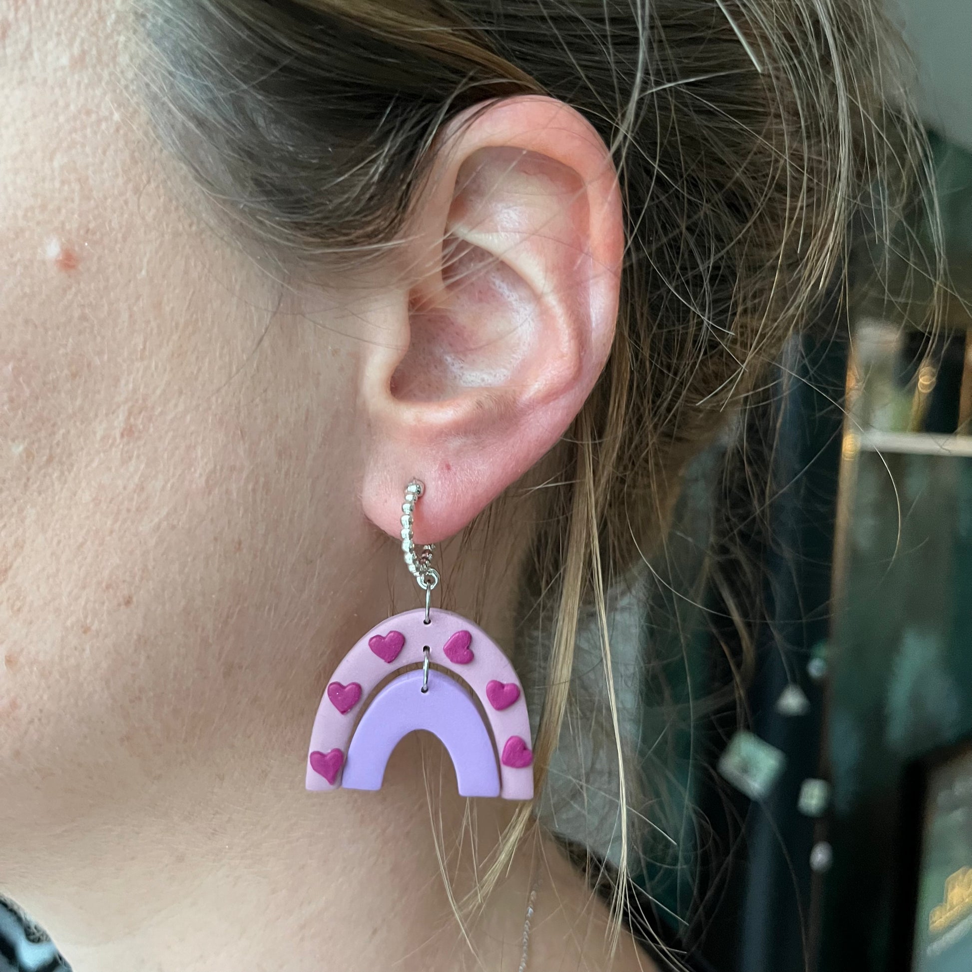 L'argile polymère est une pâte dense mais souple qui peut être modelée, sculptée, peinte… Après cuisson, cette pâte devient résistante tout en gardant sa légèreté, permettant de créer des boucles d’oreilles de toutes tailles faciles et confortables à porter.