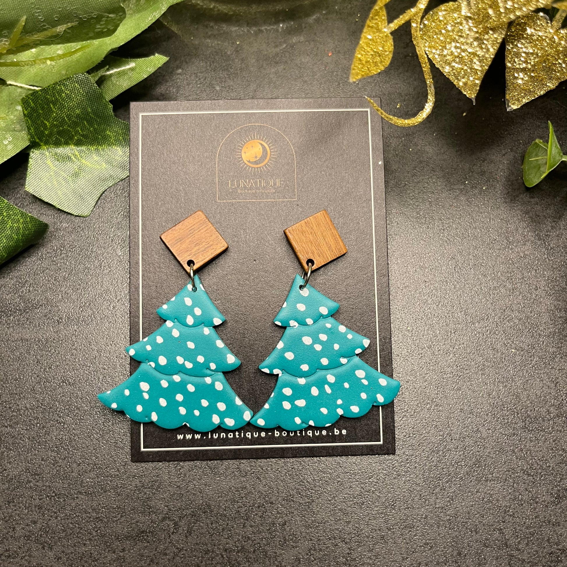 Matériau : argile polymère, vernis de protection, clous d'oreille en bois et en acier inoxydable.
