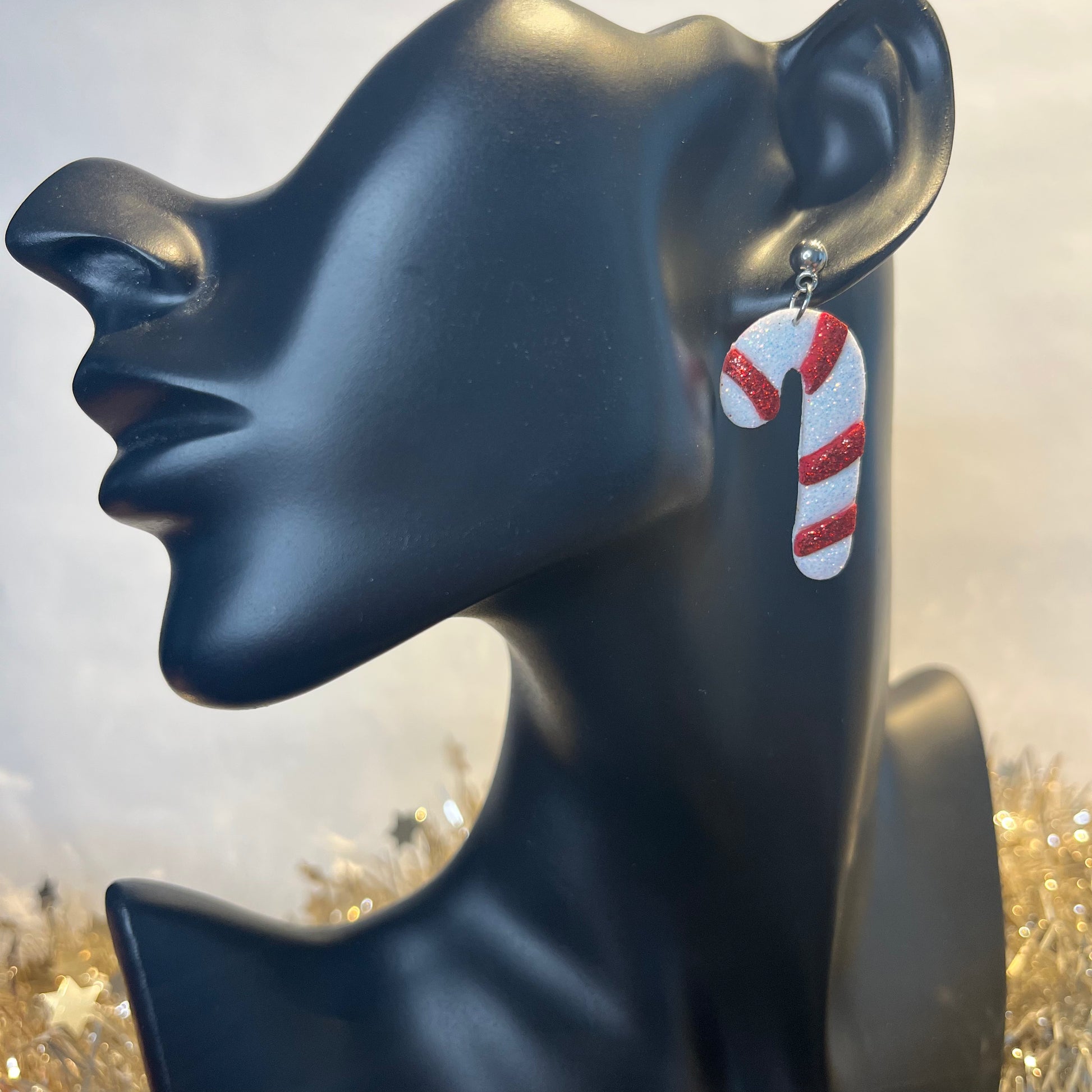 Matériau : argile polymère, finition en paillettes, clous d'oreille en acier inoxydable argenté.