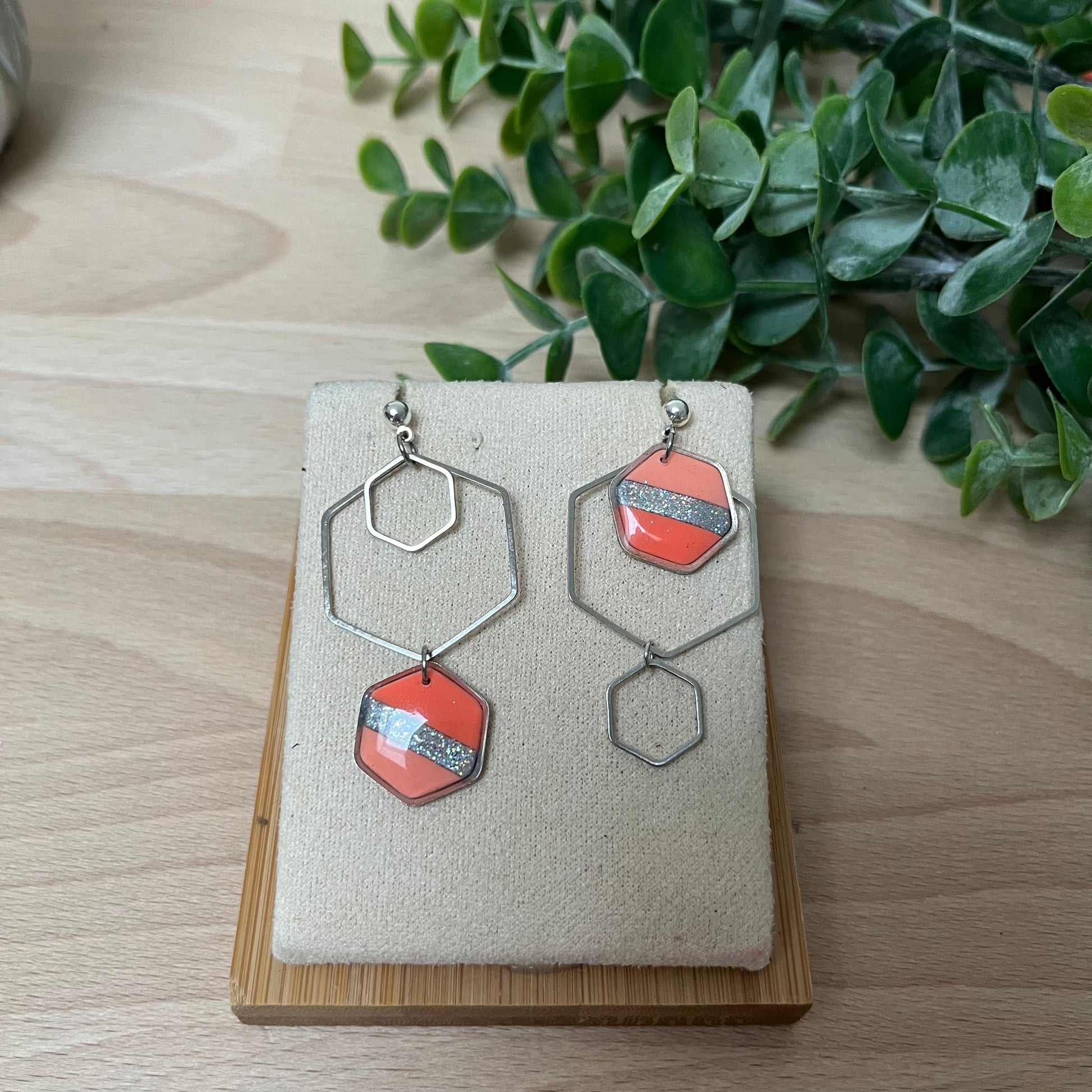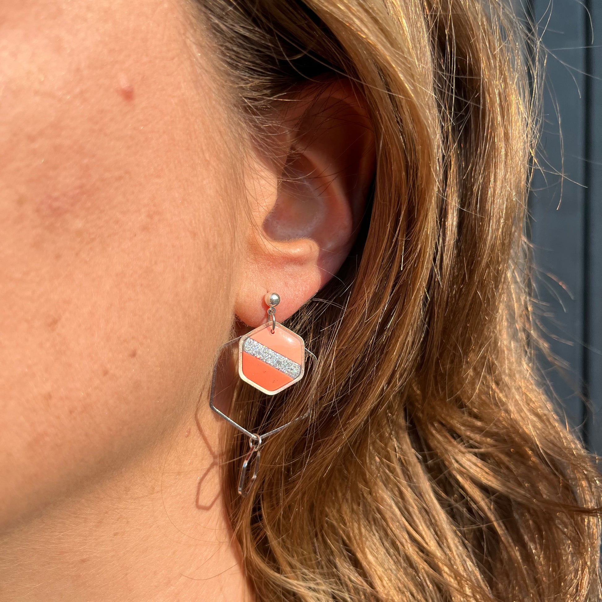 Matériau : argile polymère, finition en résine. Clous d'oreille en argent.