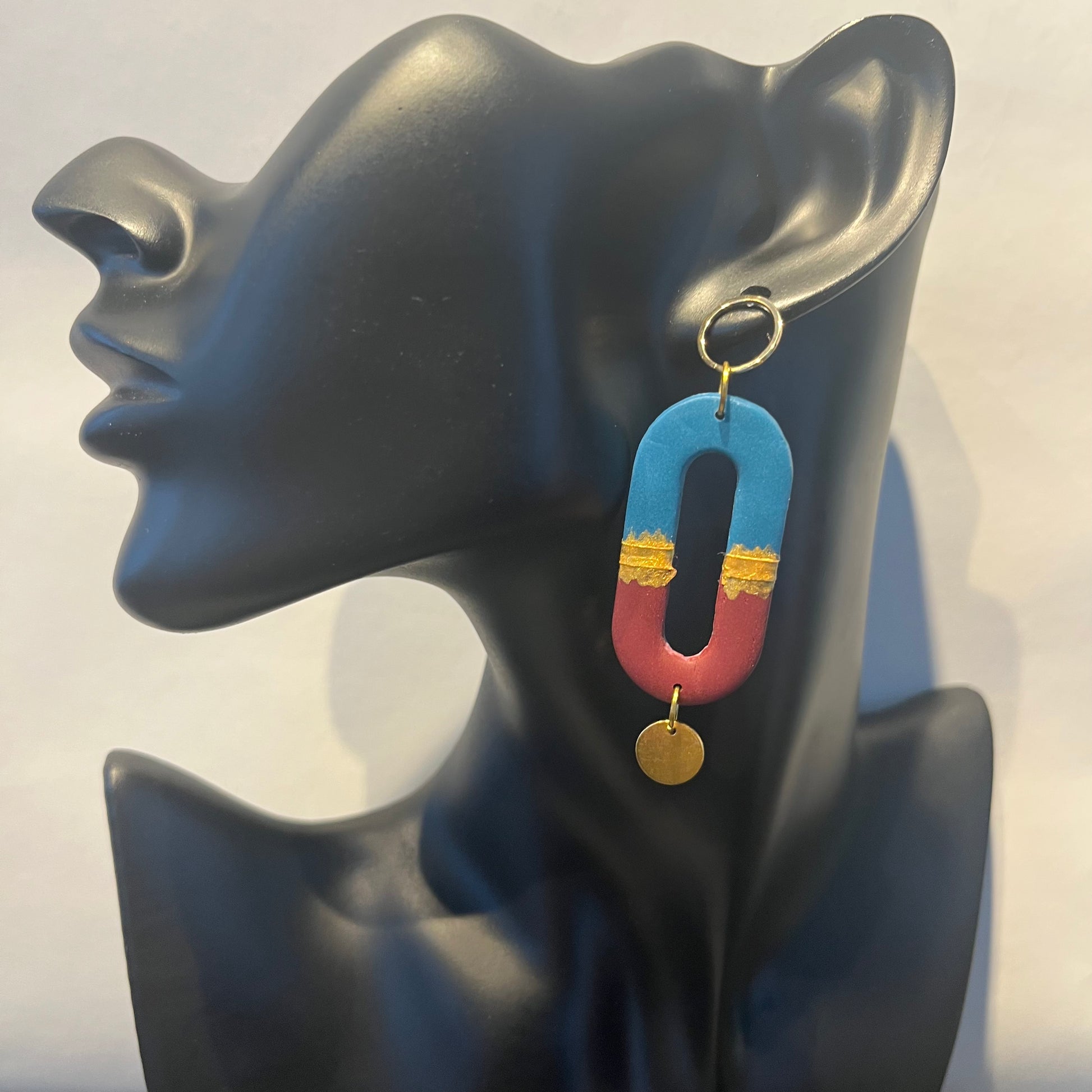 Matériau : argile polymère, clous d'oreille et breloques dorés à l'or fin.