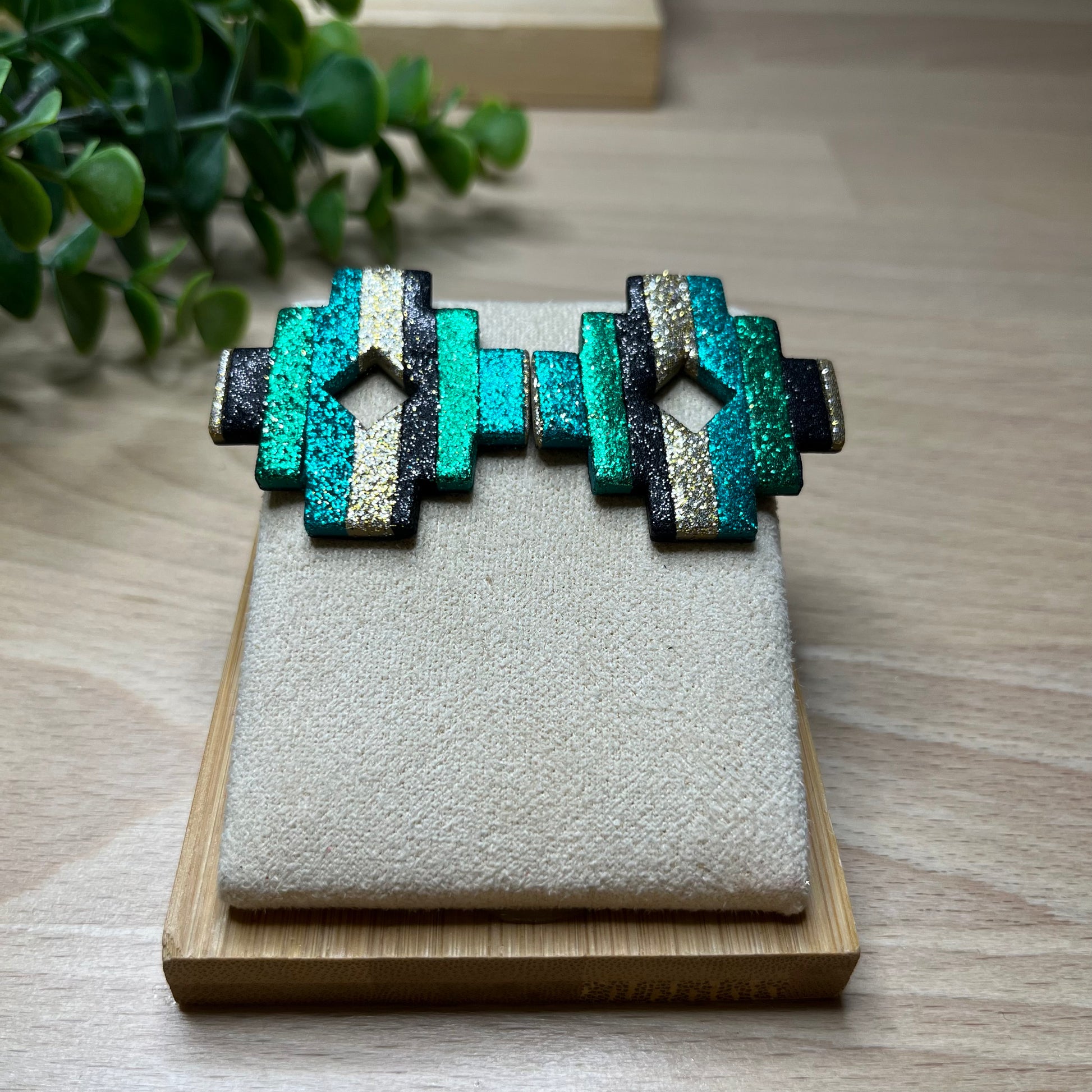 Matériau : argile polymère, finition paillettes, clous d'oreille dorés à l'or fin.