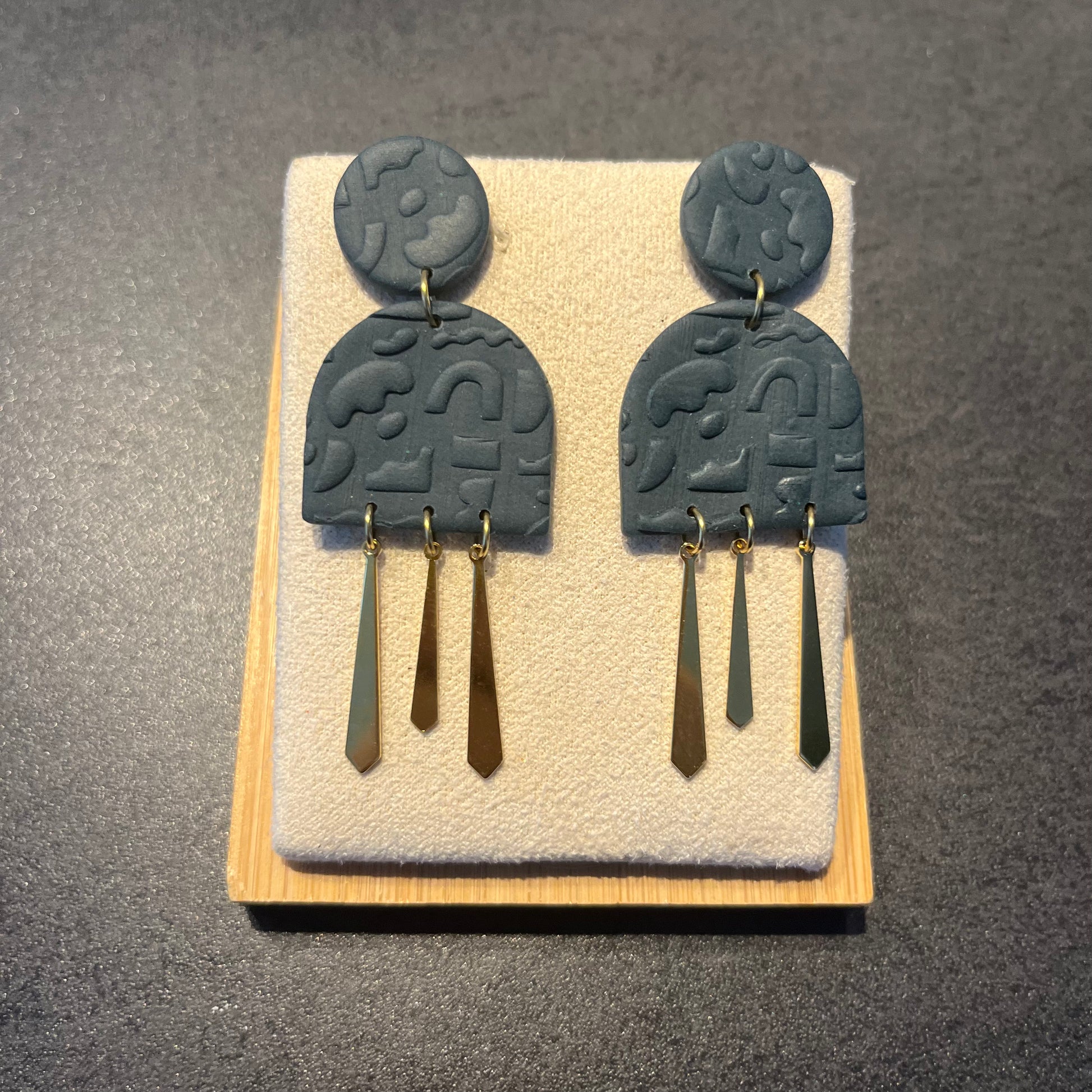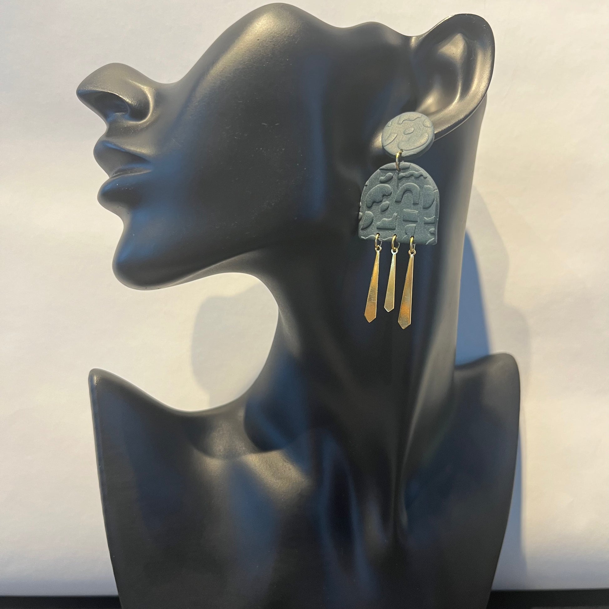 Matériau : argile polymère, breloques et clous d'oreille dorés à l'or fin.
