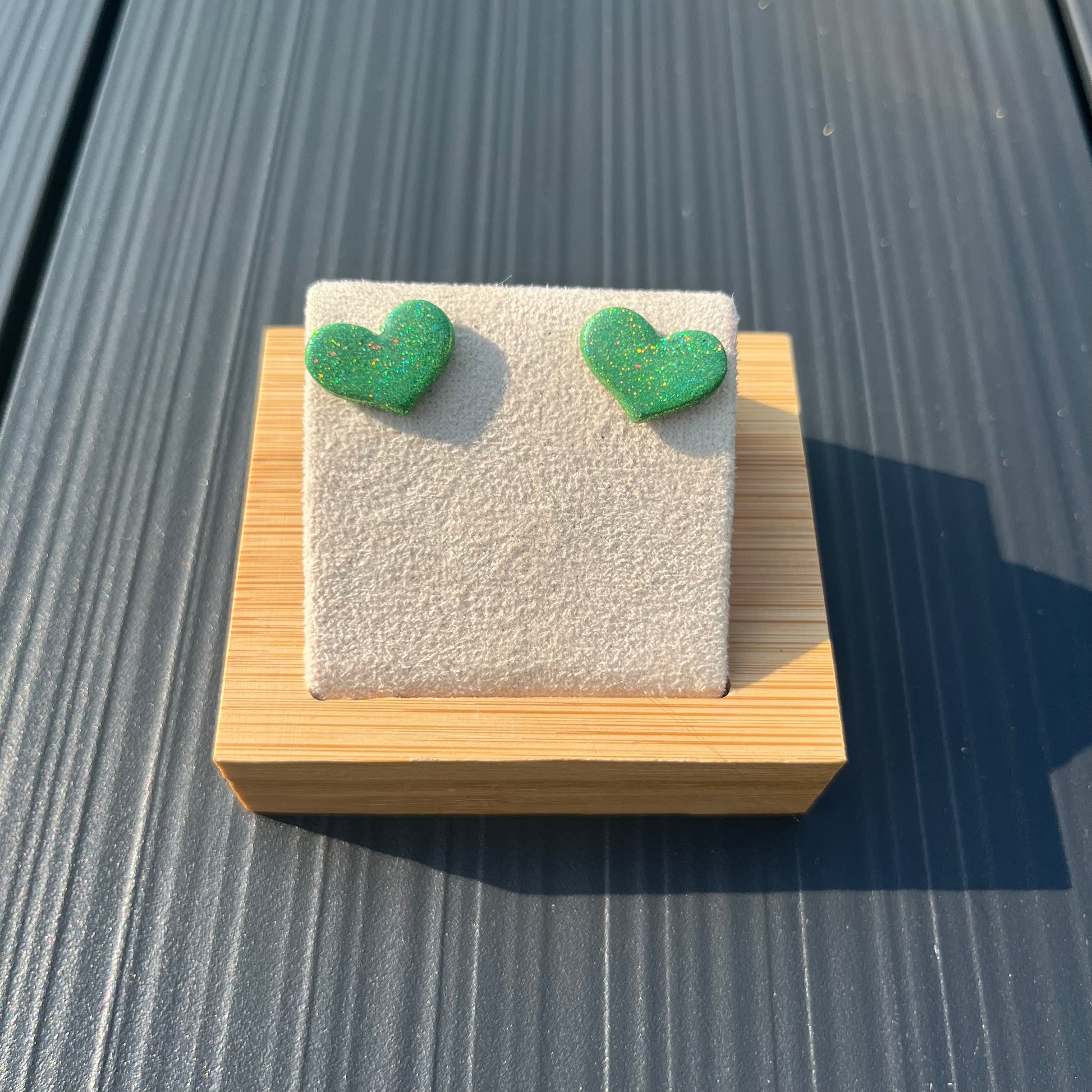 Matériau : argile polymère pailletée. Finition en résine. Clous d'oreille en argent.