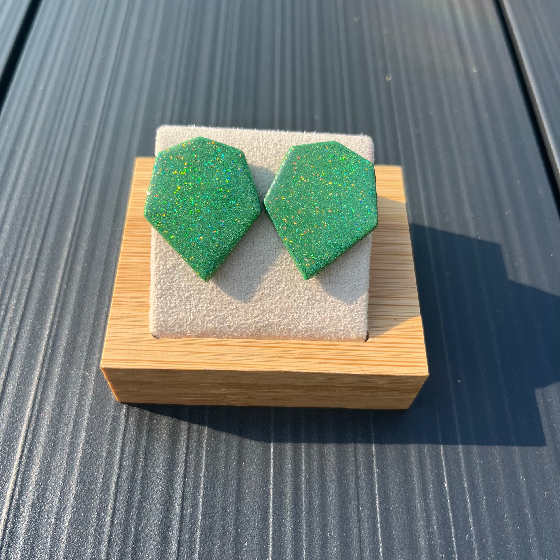 Matériau : argile polymère pailletée. Finition en résine. Clous d'oreille en argent.
