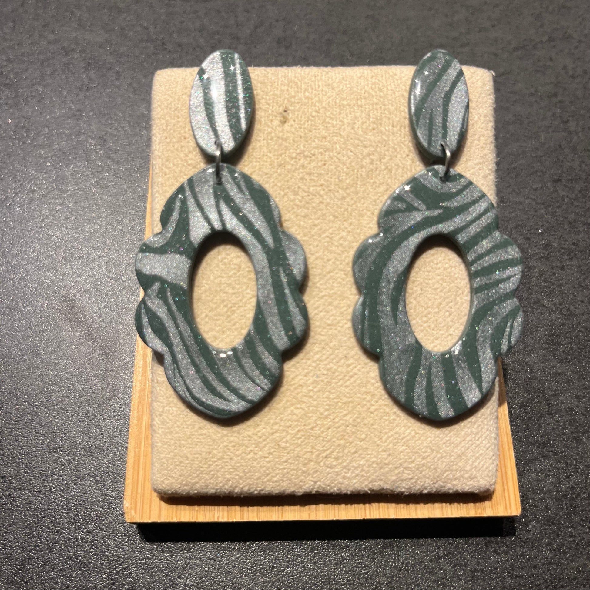 Matériau : argile polymère, finition en résine, clous d'oreille en acier inoxydable.